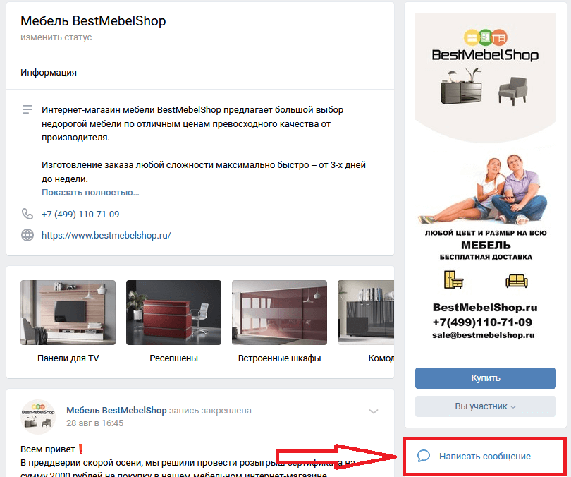 - Далее нажать на кнопку «Написать сообщение».
