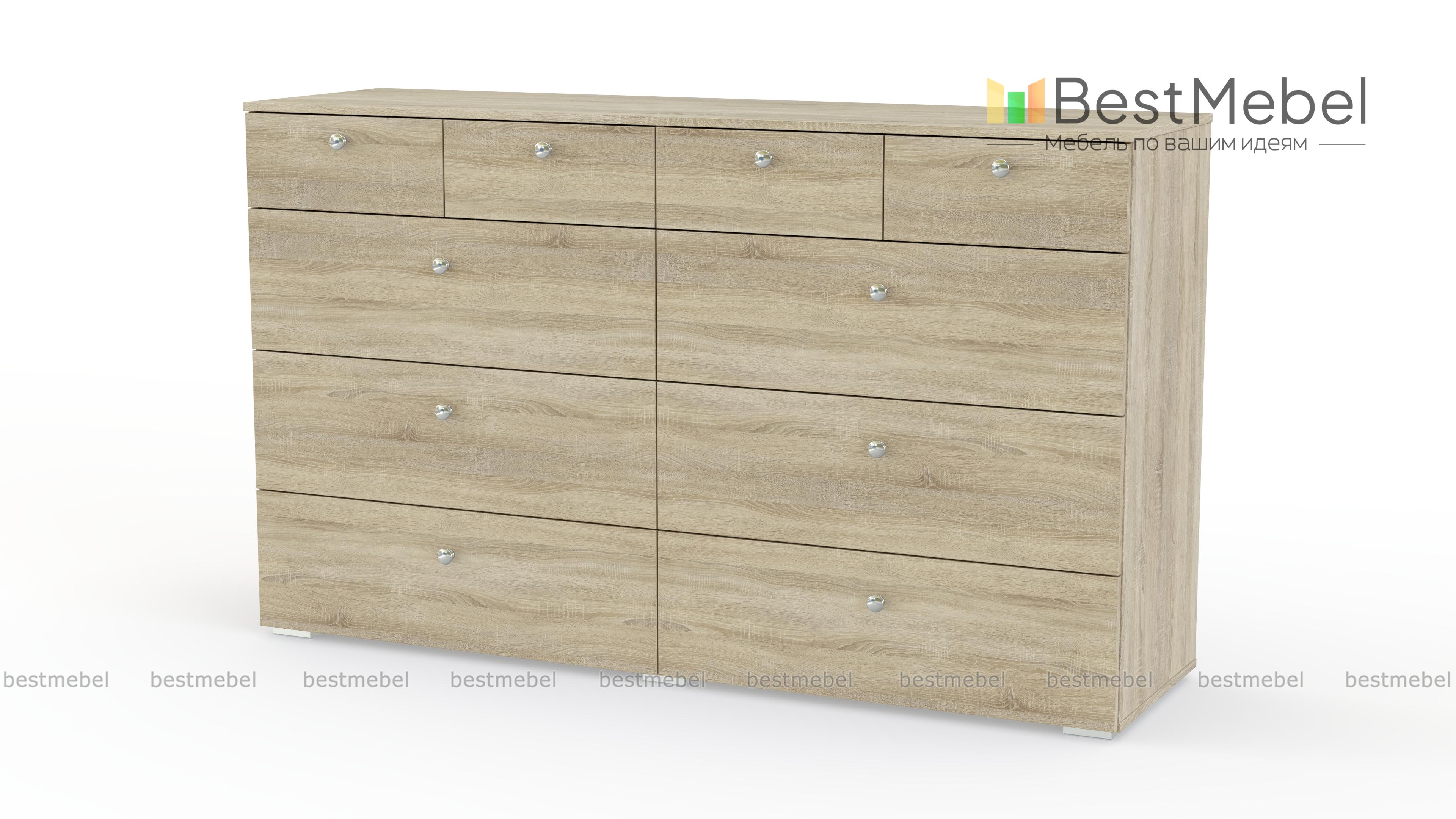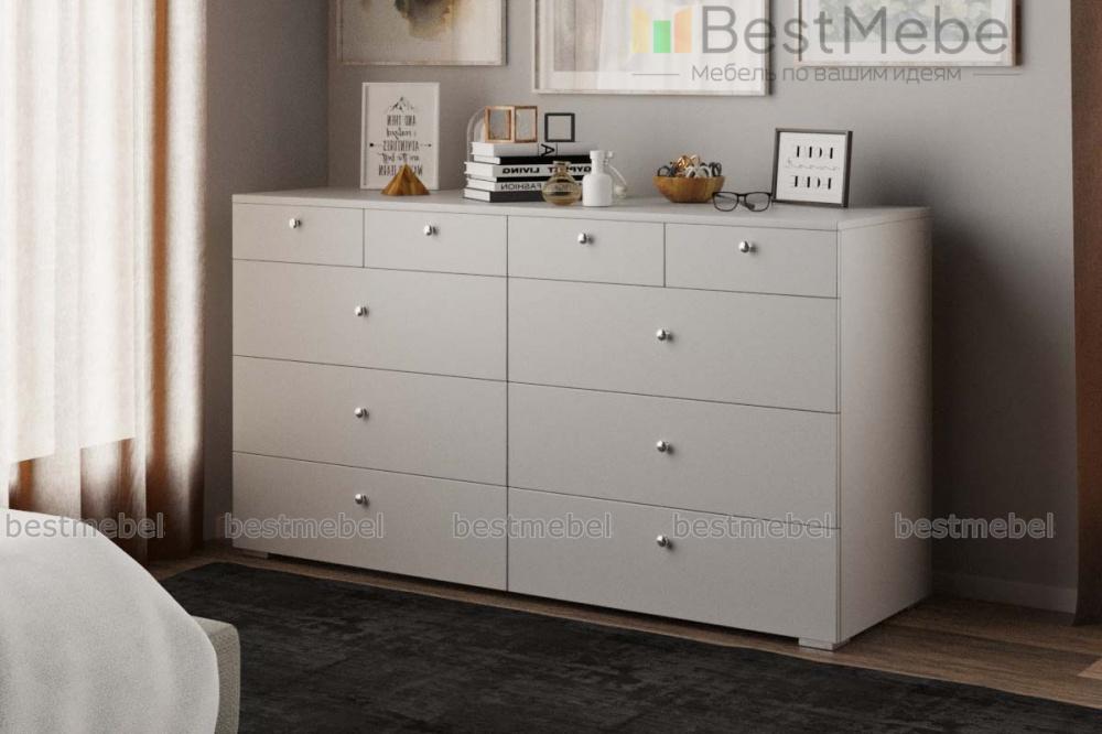 Комод Эдна 10 BMS поможет вам разместить как необходимые под рукой мелочи, так и постельное белье, одежду и аксессуары. Широкая модель с просторной столешницей оборудована четырьмя малыми выдвижными ящиками и шестью большими, оснащенными ручками-кнопками. Простой и функциональный дизайн в сочетании с исполнением в сером цвете делает модель универсальной для современных интерьеров. Купить комод Эдна 10 BMS приглашаем в наш интернет-магазин по доступной цене.
