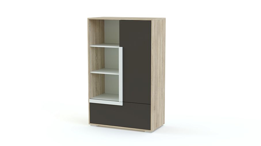 Комод с книжными полками Икар 12 BMS может стать полноценной заменой шкафу в интерьере современной молодежной комнаты. Комбинированная высокая модель оборудована распашным отделением, выдвижным ящиком в основании и открытыми книжными полками. Выполненный из безопасных материалов высокого качества, комод порадует подростков креативным дизайном и стильным сочетанием оттенков серого, древесных, белого и накладок-ручек на выбор. Купить комод с книжными полками Икар 12 BMS вы сможете в нашем интернет-магазине быстро и просто.