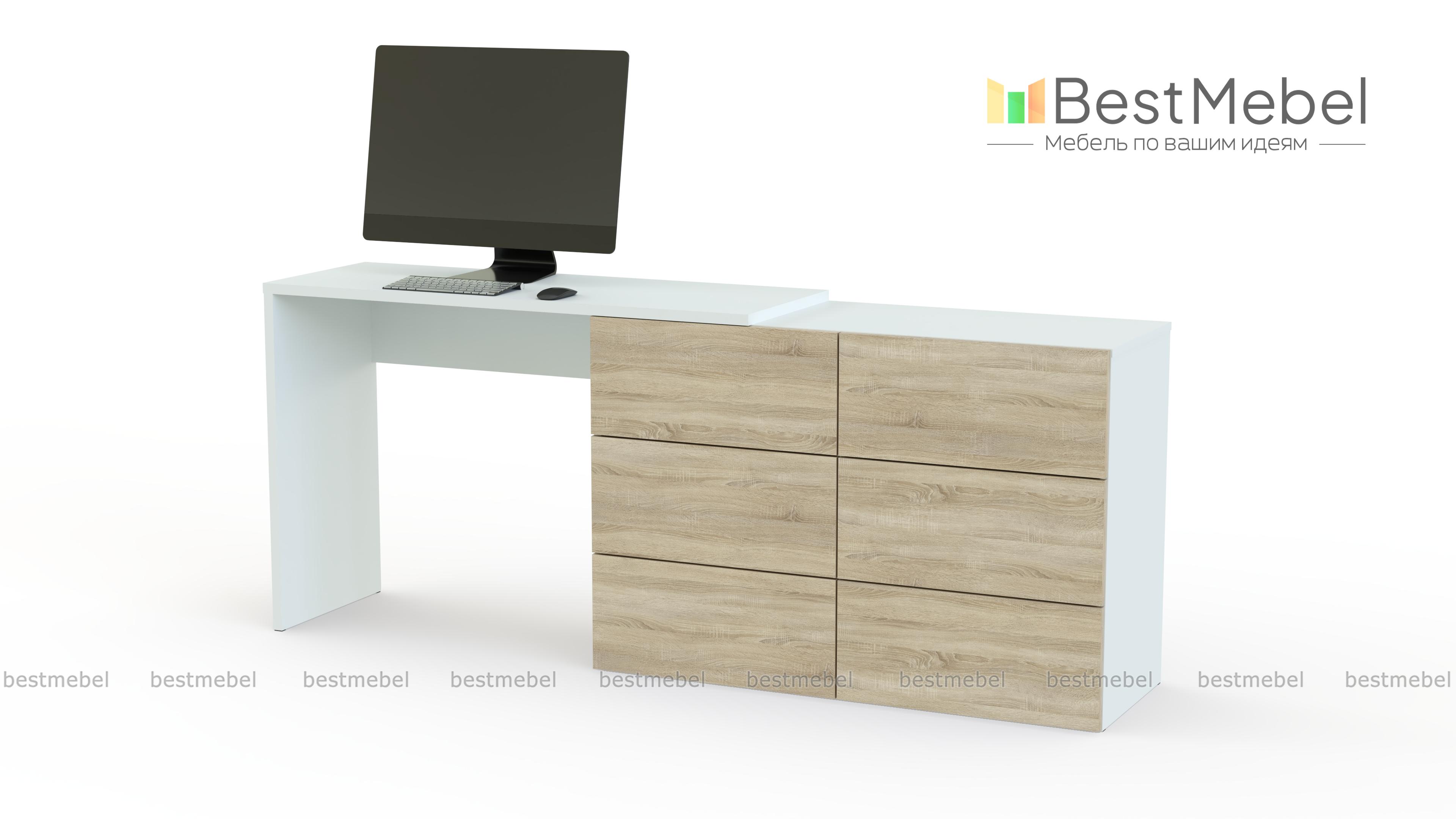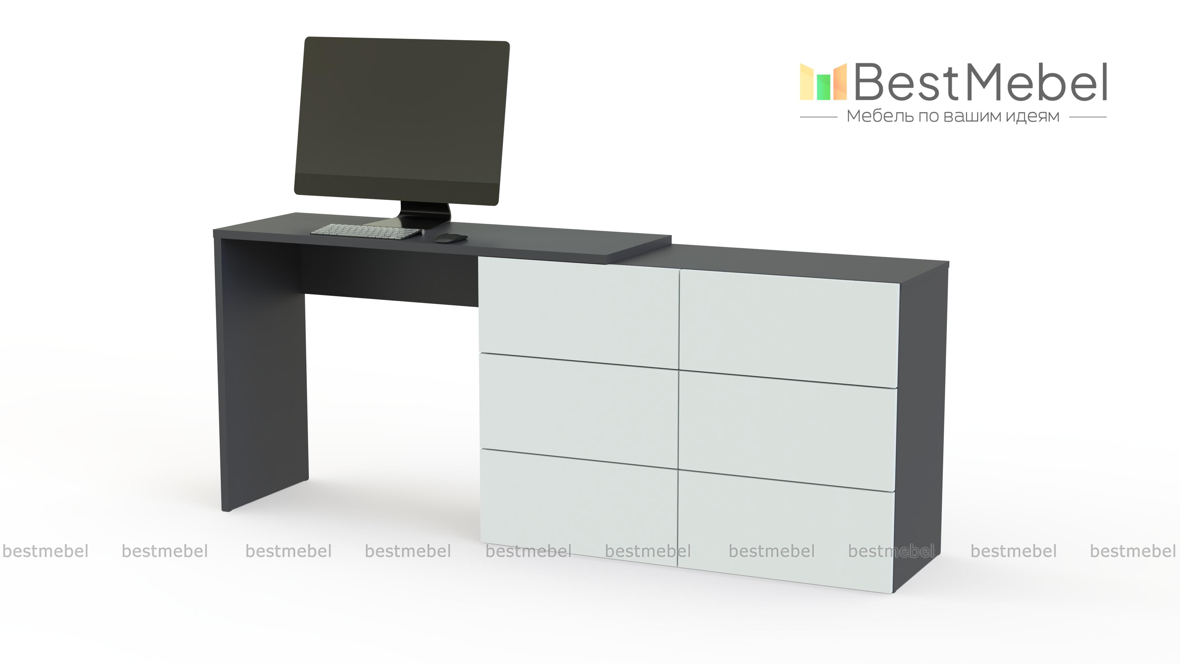 Комод со столом Капри BMS – лаконичный и выполненный в актуальных оттенках, станет практичным дополнением современного спального интерьера. Линейная модель представляет собой бельевой комод с шестью выдвижными ящиками, совмещенный с удобным для работы за ноутбуком столом. Многофункциональная композиция позволит вам сэкономить пространство, оформить телезону и выигрышно представить предметы декора. Купить комод со столом Капри BMS по выгодной цене приглашаем к нам в интернет-магазин.