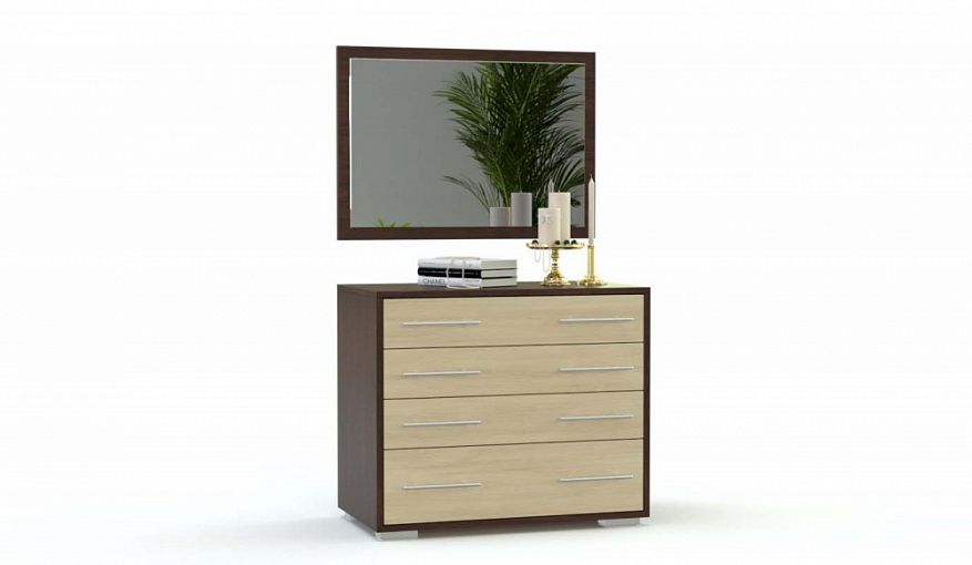 Комод Валерия Арт 6 BMS – классическая модель для меблировки спальни, гостиной или прихожей. Выполненный в контрастных древесных тонах, комод оборудован просторной столешницей и выдвижными ящиками для хранения одежды и домашнего текстиля – тремя малыми и одним большим. Прямоугольное навесное зеркало с рамой в тон корпусу поможет оформить комнату в едином стиле и визуально облегчит интерьер. Купить комод Валерия Арт 6 BMS приглашаем в наш интернет-магазин по доступной цене.