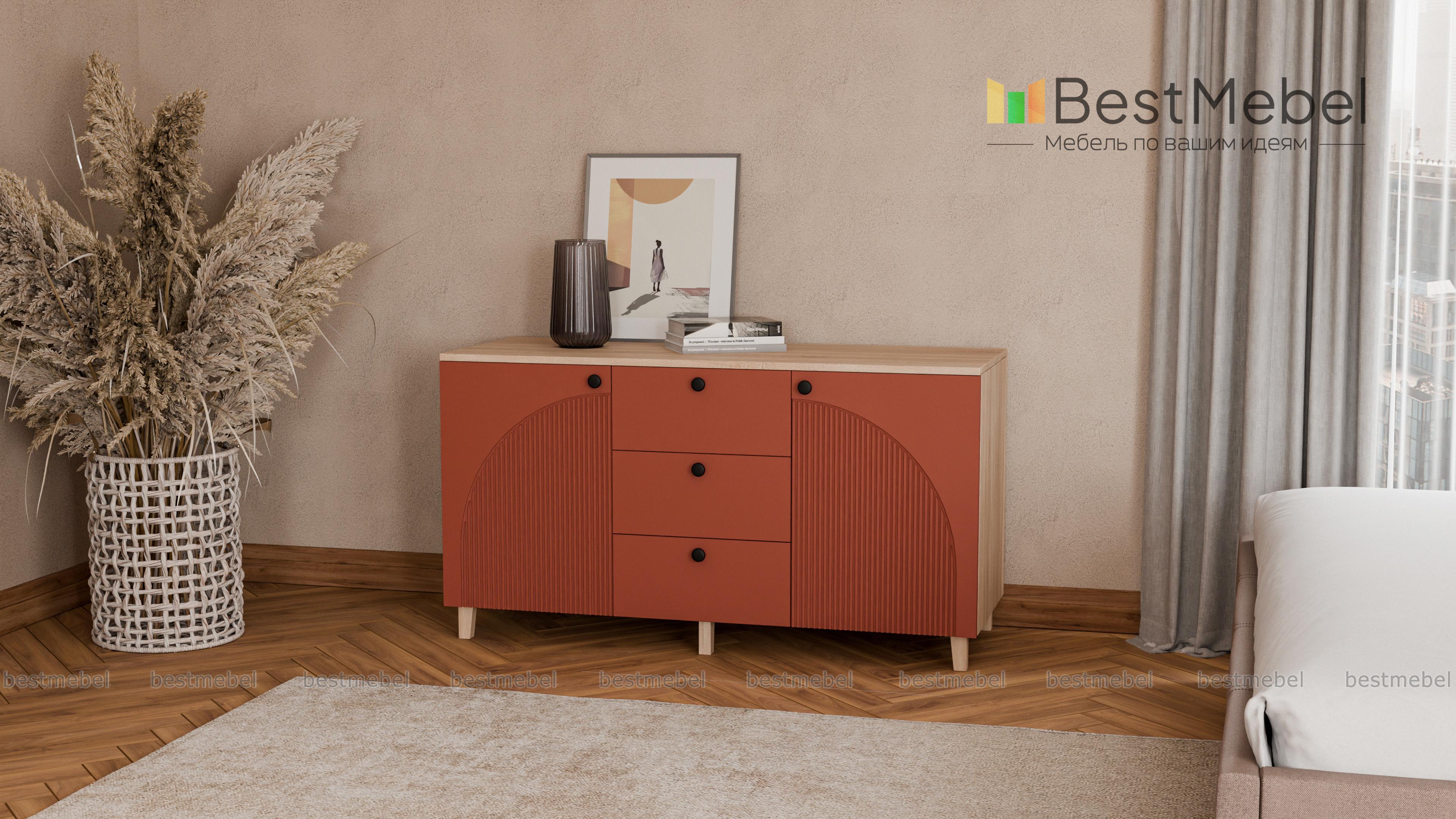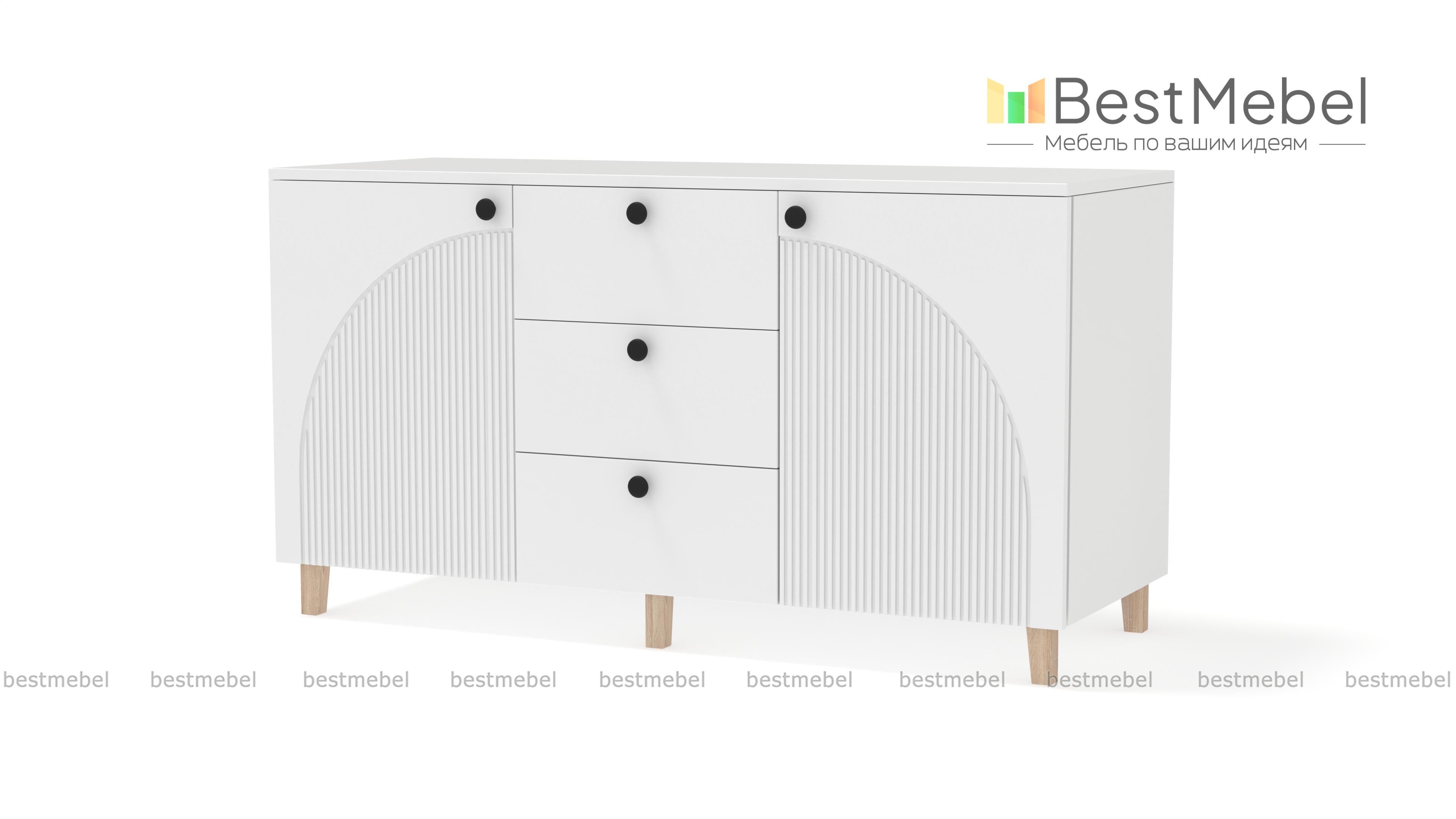 Комод Вивьен 1 BMS — красивый и функциональный, подходит для хранения, размещения техники и декора. Три выдвижных ящика, в которых так удобно хранить мелочи, дополнены просторными распашными секциями по бокам. Широкая конструкция устойчиво располагается на высоких опорах, эстетичный фасад из МДФ украшает оригинальный фрезерованный рисунок. Купить комод Вивьен 1 BMS вы всегда сможете в нашем интернет-магазине, подобрав подходящие именно вам цвета и размеры.