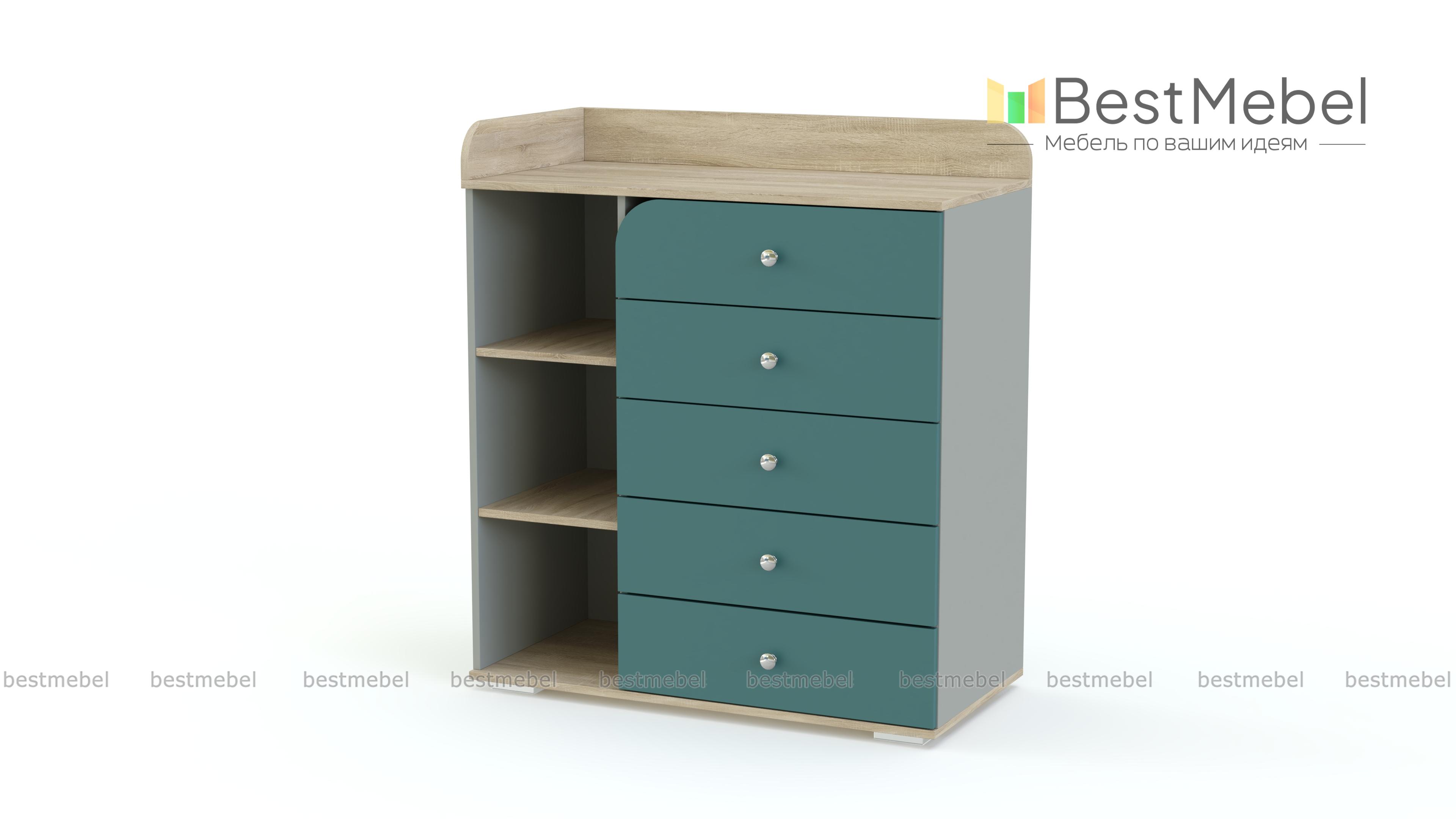 Пеленальный комод Арка 2 BMS с расположенными углом защитными бортиками позволит укладывать малыша вдоль задней стенки и боком к маме. Пять выдвижных ящиков, один из которых с полукруглым вырезом, и три открытые секции разместят все необходимые под рукой средства гигиены, пеленки, одежду и игрушки. Оригинальный дизайн в сочетании с широким выбором цветовых решений позволяет гармонично вписать комод в любую детскую. Купить пеленальный комод Арка 2 BMS по доступной цене приглашаем в наш интернет-магазин.