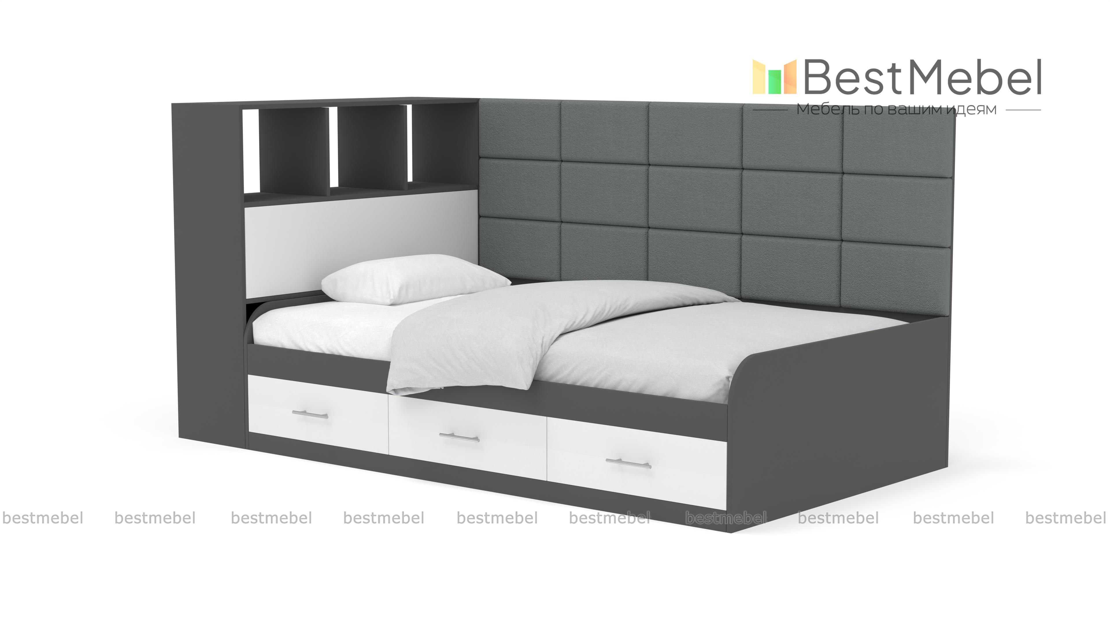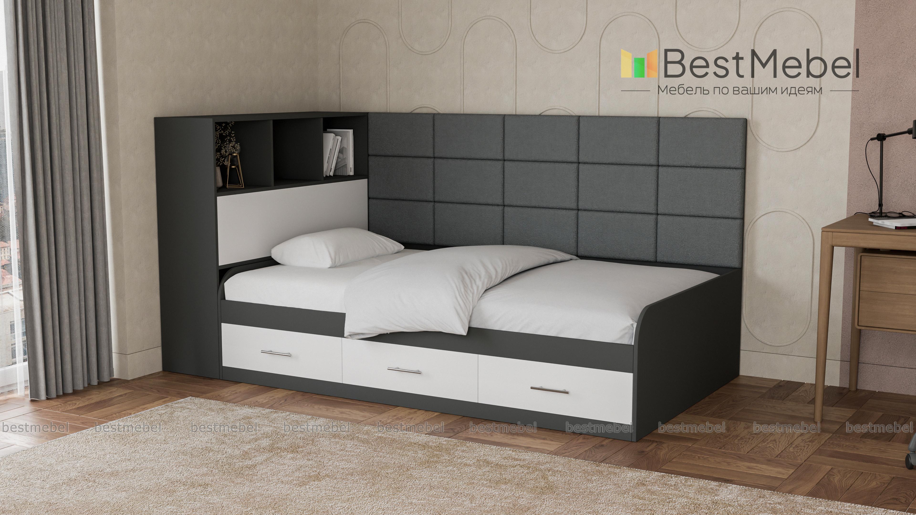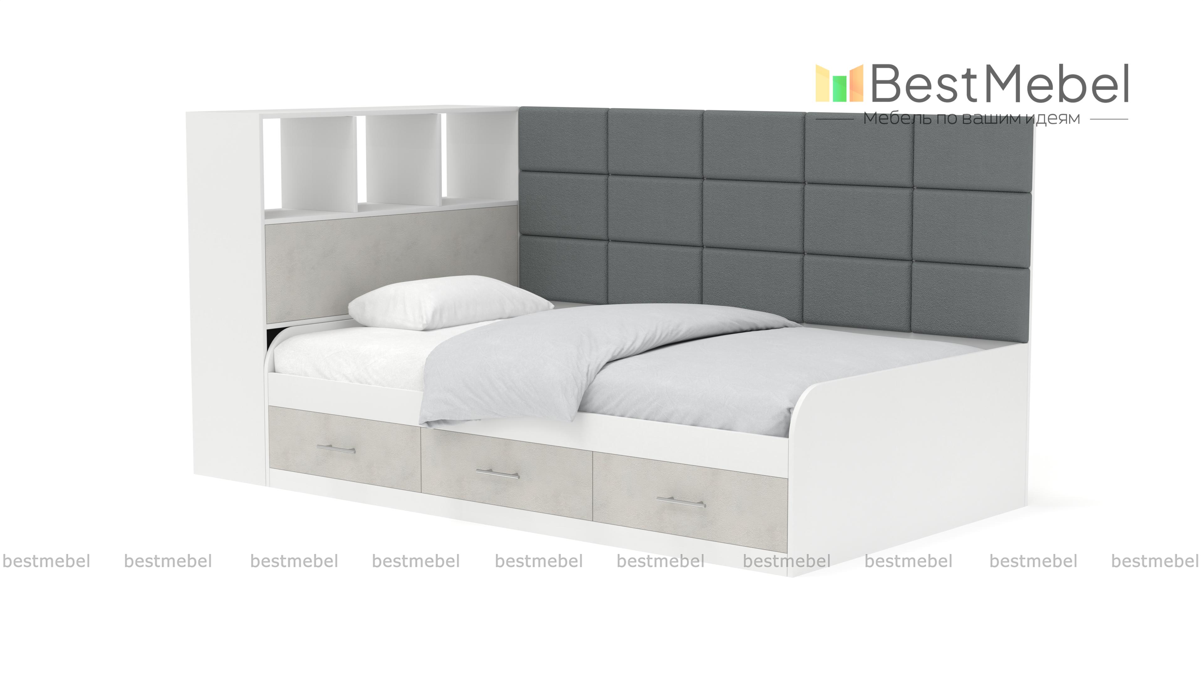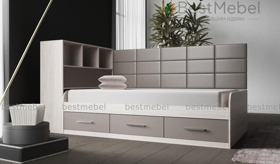 Кровать с 3 ящиками Монти BMS – это практичная тахта, подходящая для дневного отдыха и сна. Отличный вариант для современной детской или подростковой комнаты, модель оборудована просторным спальным местом с высокой спинкой. Для хранения постельных принадлежностей, книг и важных мелочей предусмотрены три выдвижных ящика в основании и встроенные в боковину открытые полки и глухое отделение. Особенно уютный вид кровати придает сочетание корпуса древесных тонов с мягкой обивкой, простроченной квадратами. Купить кровать с 3 ящиками Монти BMS приглашаем в наш интернет-магазин, подобрав цветовое решение.