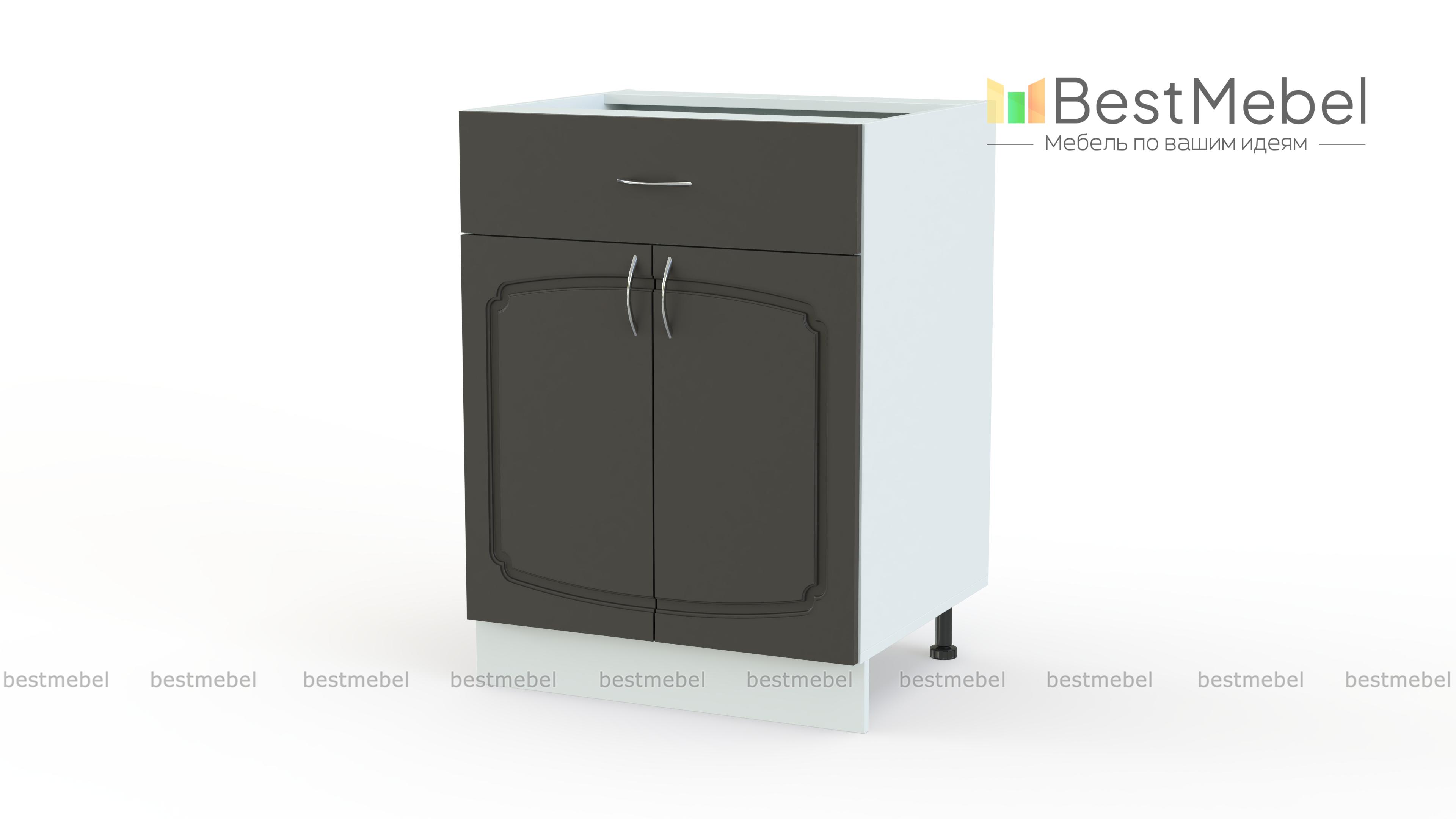 Эмилия шкаф напольный с ящиком BMS дополнит нижний ряд элегантной модульной системы и сделает интерьер кухни функциональнее. Классическая модель оборудована двумя типами отделений – широким выдвижным ящиком для столовых приборов и распашной секцией с полкой, подходящей для хранения запасов продуктов и габаритных кухонных принадлежностей. Эффектный вид шкафу придают фигурно вырезанный фасад с фрезеровкой и ручками под серебро. Купить Эмилия шкаф напольный с ящиком BMS вы всегда сможете в нашем интернет-магазине по приятной цене.