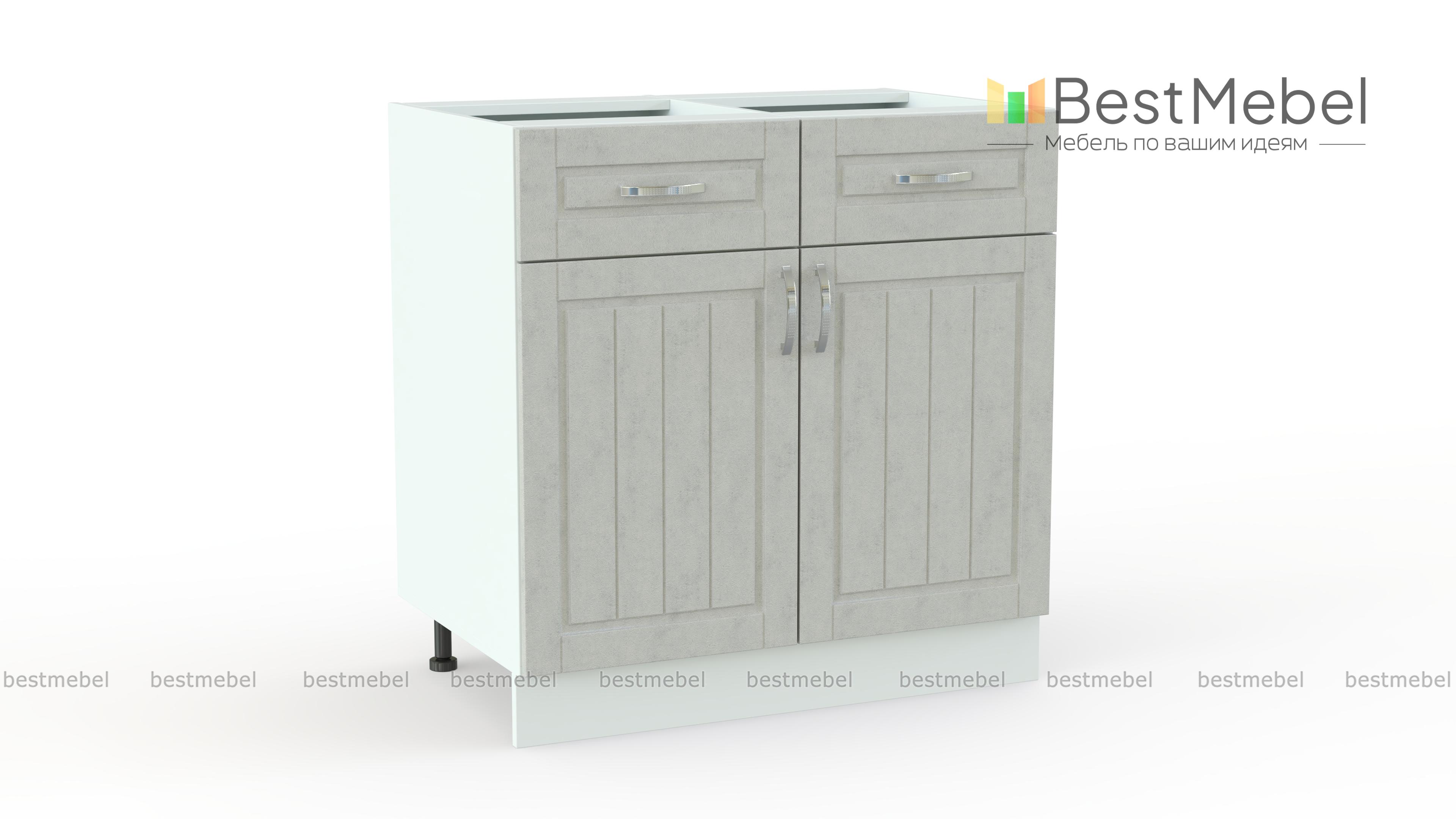 Шкаф нижний Лондон 2 двери 2 ящика BMS – это практичная комбинированная конструкция и дизайн в стиле современной классики. Под просторной столешницей шкафа располагаются два выдвижных ящика для необходимых под рукой мелочей и распашное отделение с полкой для посуды и продуктов. Фасады с вертикальной фрезеровкой выполнены в актуальных светлых тонах и продолжат напольный ряд кухонного гарнитура. Купить шкаф нижний Лондон 2 двери 2 ящика BMS приглашаем в наш интернет-магазин по доступной цене.