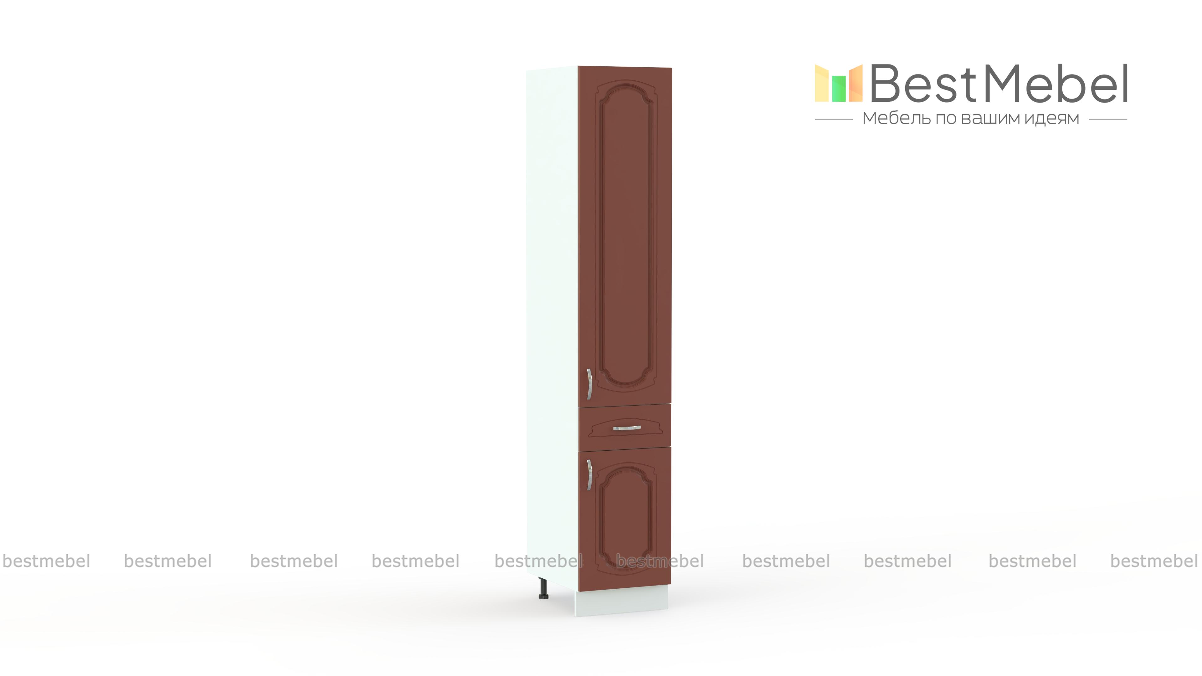 Шкаф-пенал с дверцами и 1-м ящиком Настя BMS отличается компактными размерами, высокой функциональностью и станет оригинальным дополнением комплекта для кухни в классическом стиле. Высокий шкаф оборудован двумя распашными отделениями с полками и выдвижным ящиком в центральной части. Продуманная конструкция позволяет разместить не только крупные предметы, но и необходимые под рукой мелочи. Купить шкаф-пенал с дверцами и 1-м ящиком Настя BMS приглашаем в наш интернет-магазин по лучшей цене.