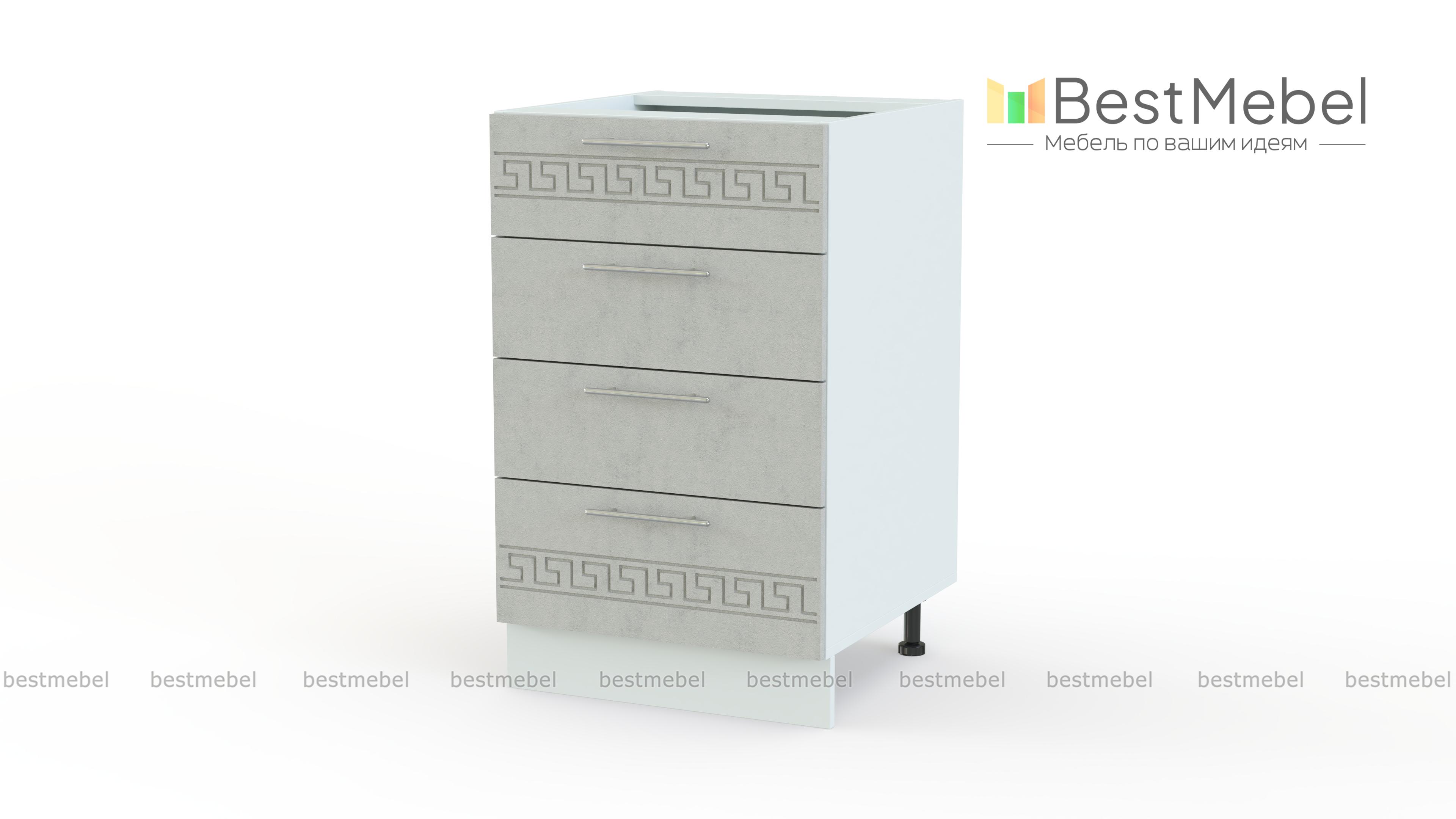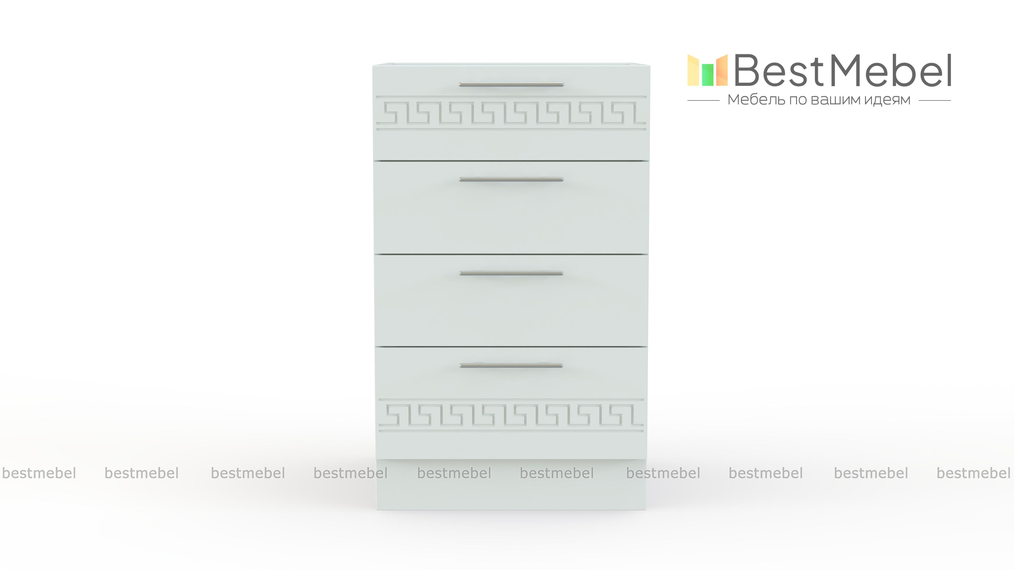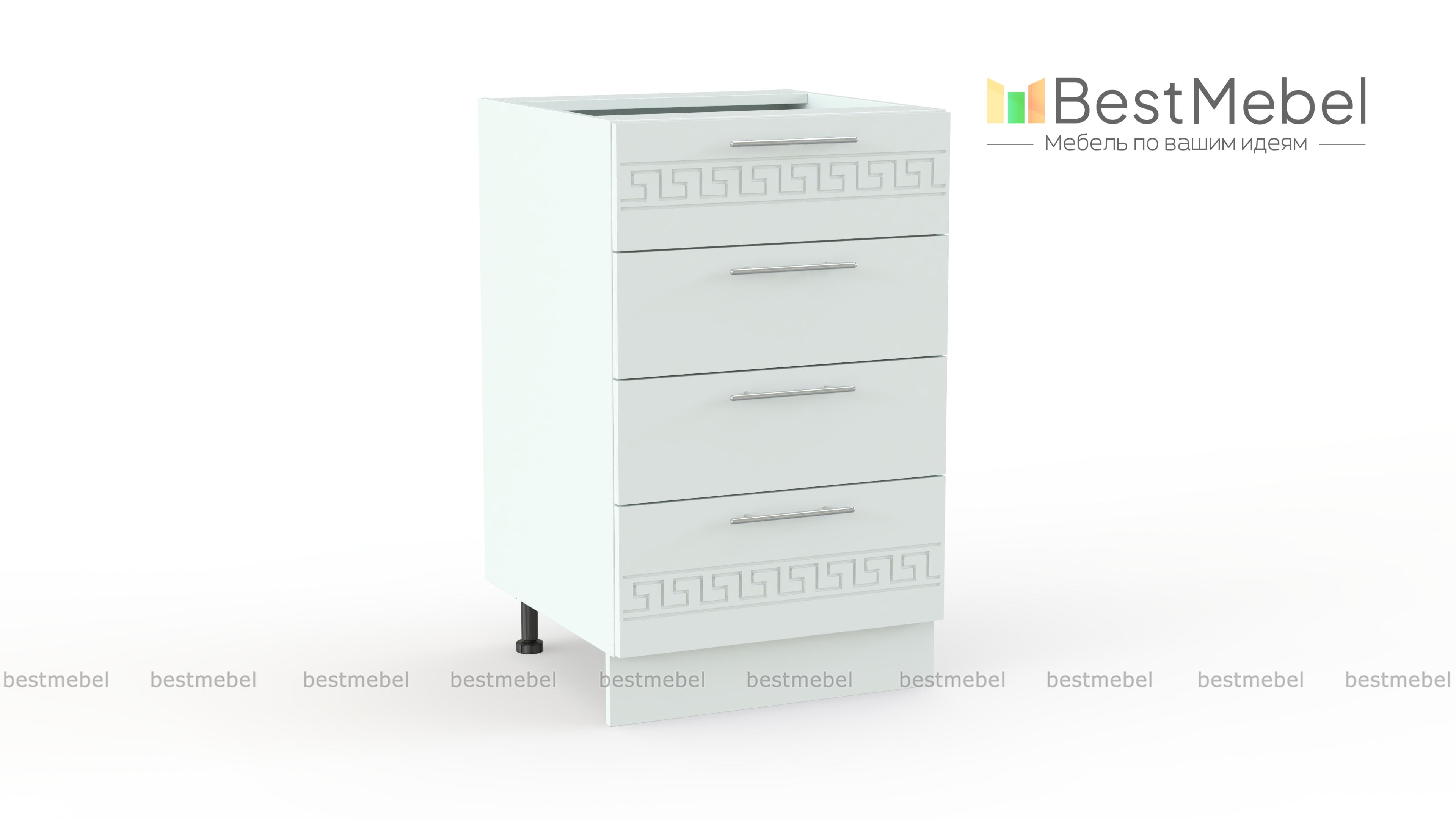 Тумба напольная 4 ящика Греция BMS – оригинальная широкая модель для меблировки кухни. Уместная и в качестве дополнения к комплекту, и самостоятельно, тумба отличается изящным дизайном – матовые фасады светлых тонов декорированы орнаментом. Разместить под рукой необходимые мелочи помогут четыре просторных выдвижных ящика, а удобной рабочей поверхностью станет столешница. Купить тумбу напольную 4 ящика Греция BMS и сэкономить время на поиски нужной вещи вам всегда поможет наш интернет-магазин.