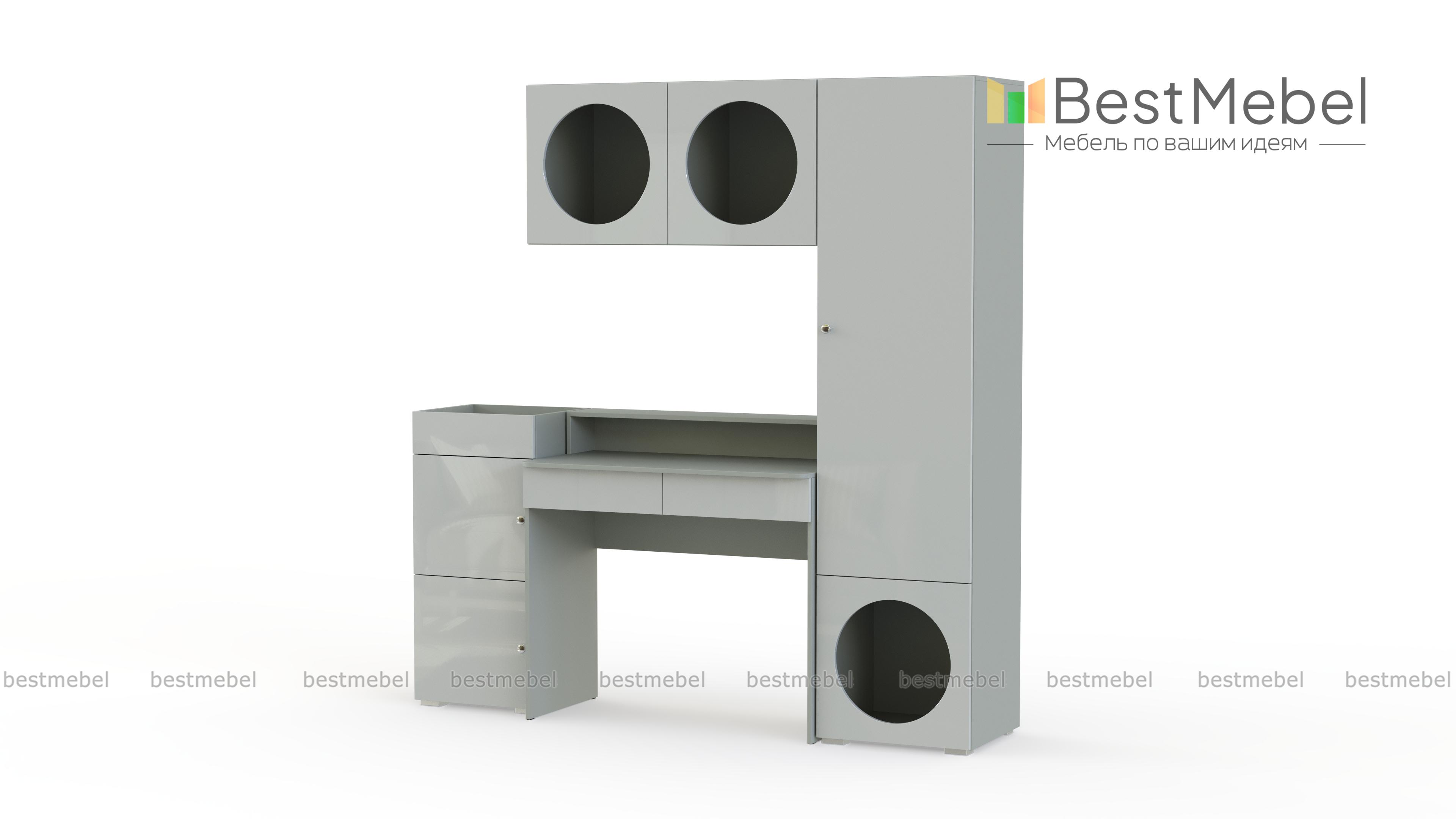 Детская стенка Авелин 1 BMS создаст эстетичное пространство для учебы и творчества. Геометрический дизайн модулей прекрасно сочетается с темным оттенком фасадов и нейтральным, базовым цветом корпуса. Комплектация, подходящая для небольшой комнаты, включает в себя компактный стол с нишей и тумбу, шкаф-пенал и подвесную полку, оборудованную отсеками с круглыми вырезами. Купить детскую стенку Авелин 1 BMS вы сможете в нашем интернет-магазине, по желанию поменяв размеры, цвет и тип ручек.