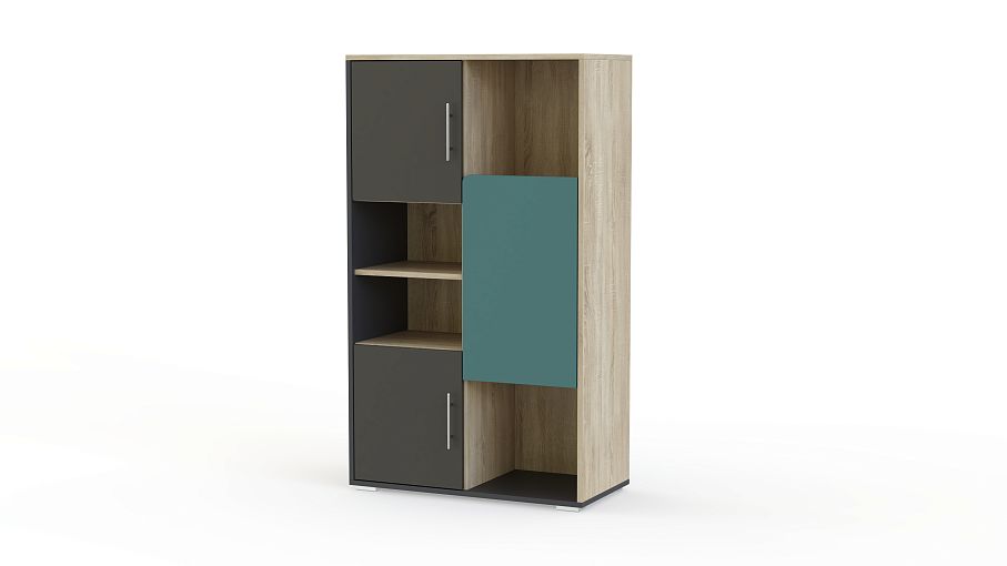 Книжный шкаф Jackie BMS привлекает внимание современным дизайном и актуальным цветовым решением в темных тонах. Асимметричная модель станет интересным акцентом в интерьере и будет гармонично смотреться в молодежных комнатах. Разместить книги, школьные принадлежности и разнообразные гаджеты помогут три распашных отделения и открытые просторные полки разной высоты. Купить книжный шкаф Jackie BMS для комфортного и стильного интерьера приглашаем в наш интернет-магазин.