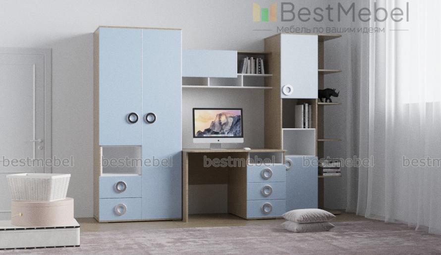 Модульная детская Космос 01 BMS выполнена из экологичных материалов и не оставит равнодушными детей и взрослых благодаря креативному современному дизайну. Комплект станет отличным дополнением комнаты школьника и позволит разместить предметы гардероба и все необходимое для учебы и творческих занятий. Детская оборудована компьютерным столом с тумбой, двухдверным комбинированным шкафом, навесной секцией, стеллажом с открытыми полками и дверцами и торцевым элементом. Особенность композиции – цветные фасады с круглыми ручками в оттенке металлик. Купить модульную детскую Космос 01 BMS, обеспечив юным исследователям хорошее настроение, вы сможете в нашем интернет-магазине.