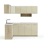 Вкусное сочетание древесного оттенка со свежим белым в оформлении кухни Арина 14 BMS смотрится необычно и стильно. Современный угловой комплект состоит из пяти напольных и восьми навесных независимых модулей, которые вы сможете разместить по своему вкусу. Наличие множества отделений сделает хранение кухонных принадлежностей удобным, а готовку превратит в удовольствие. Простая по форме, эта модель легко впишется в интерьер вашего дома и станет его украшением.