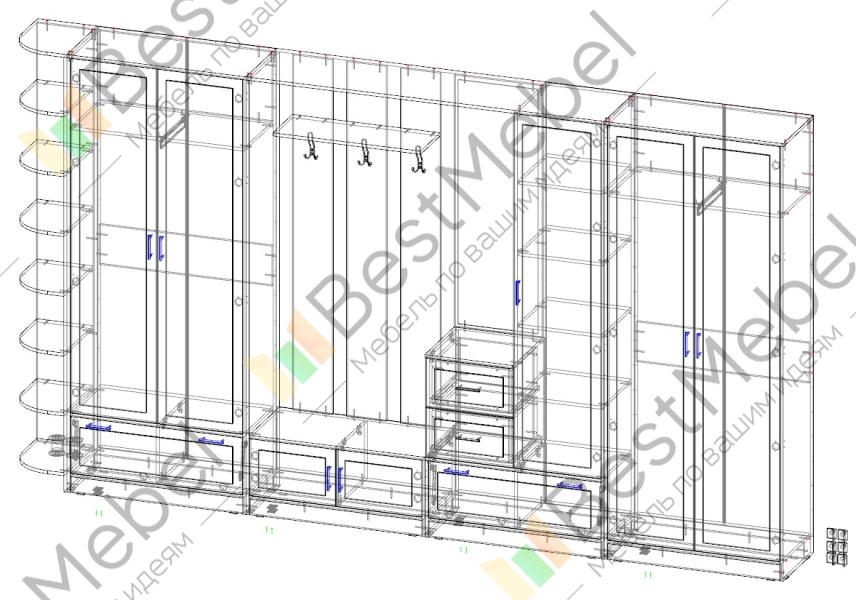 Прихожая Велла-4М BMS – выгодное приобретение для просторного холла в классическом стиле. Крупногабаритная конструкция придется по душе тем, кто ценит респектабельность и надежность традиционных моделей. В комплекте распашные шкафы для одежды с полками и штангами, тумбы, открытая вешалка, зеркало с выдвижными ящиками для мелочей и незаменимый для интерьерных украшений торцевой стеллаж со скругленными полками. Фасады теплых древесных оттенков декорированы изящными ручками. Купить прихожую Велла-4М BMS приглашаем по выгодной цене в наш интернет-магазин.