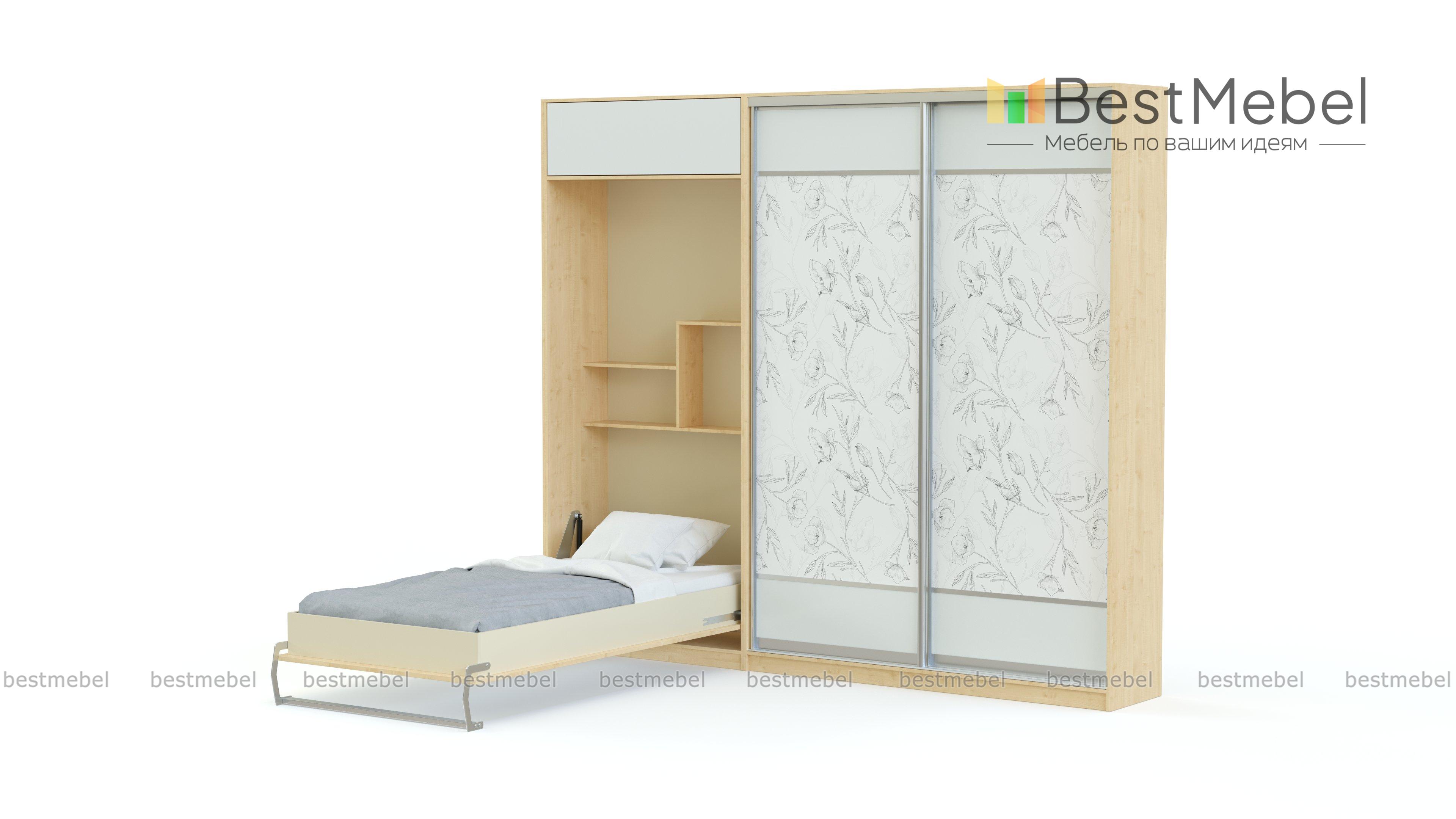 Шкаф-кровать трансформер Форма 130 BMS – универсальный вариант для спальни или гостиной. Современная многофункциональная композиция 2 в 1 – это комфорт, надежность, экономия пространства и времени на уборку постельного белья. Модель оборудована вместительным шкафом-купе для хранения гардероба, антресолью и модулем-трансформером с откидной кроватью. Декорированные абстрактным рисунком фасады помогут создать запоминающийся, яркий интерьер. Купить шкаф-кровать трансформер Форма 130 BMS с учетом необходимых параметров приглашаем к нам в интернет-магазин.