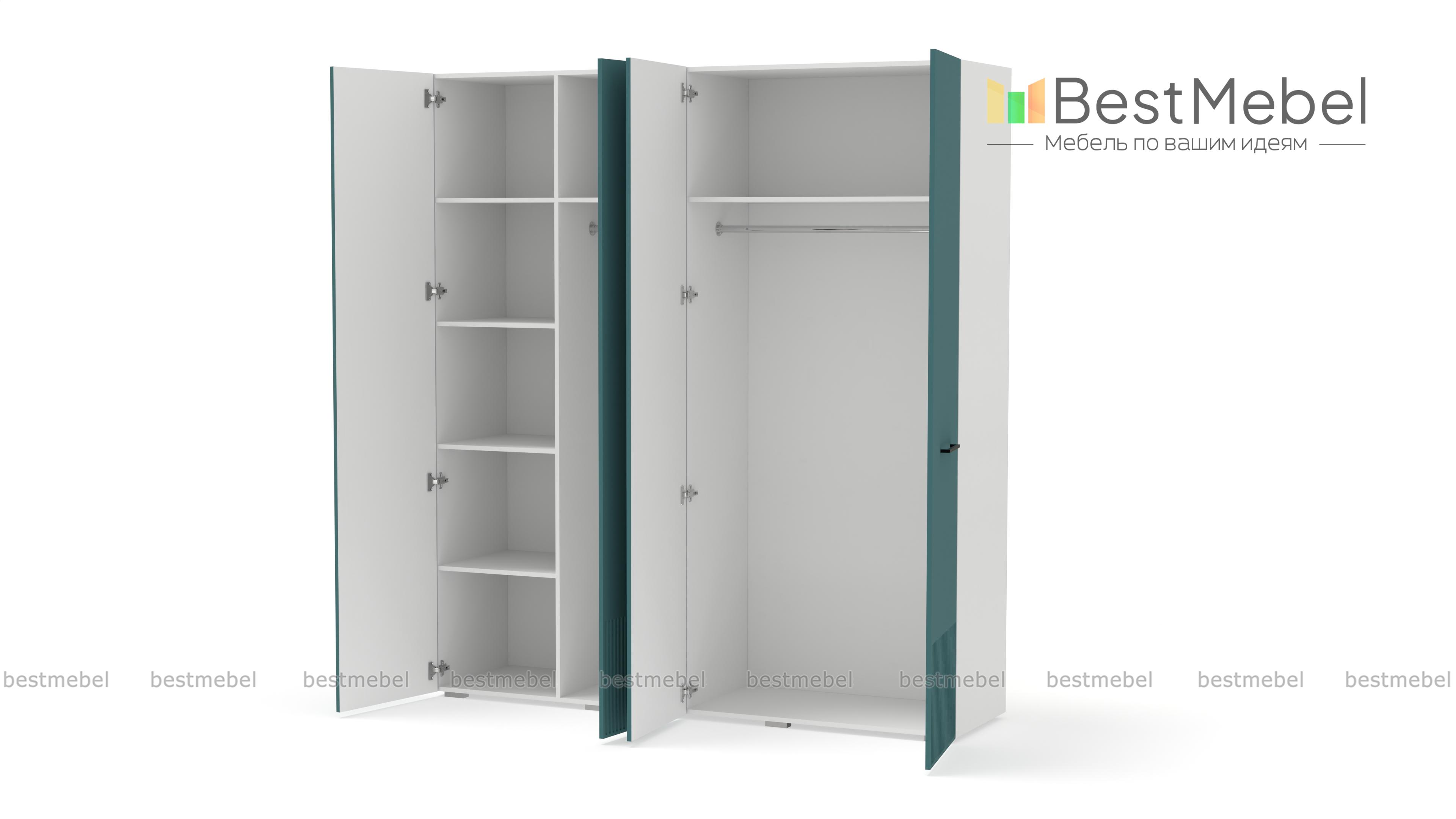 Шкаф распашной Декарт 4 BMS выполнен в традиционном стиле с поперечными контрастными ручками и фрезеровкой, что придает ему современный вид. Сочетание двух штанг разной длины и полок позволяет вам удобно организовать хранение одежды и коробок с обувью. Устойчивый к механическим повреждениям и влаге фасад из МДФ легко содержать в чистоте. Купить шкаф распашной Декарт 4 BMS с выбором размеров, цвета и наполнения вы всегда сможете в нашем интернет-магазине.