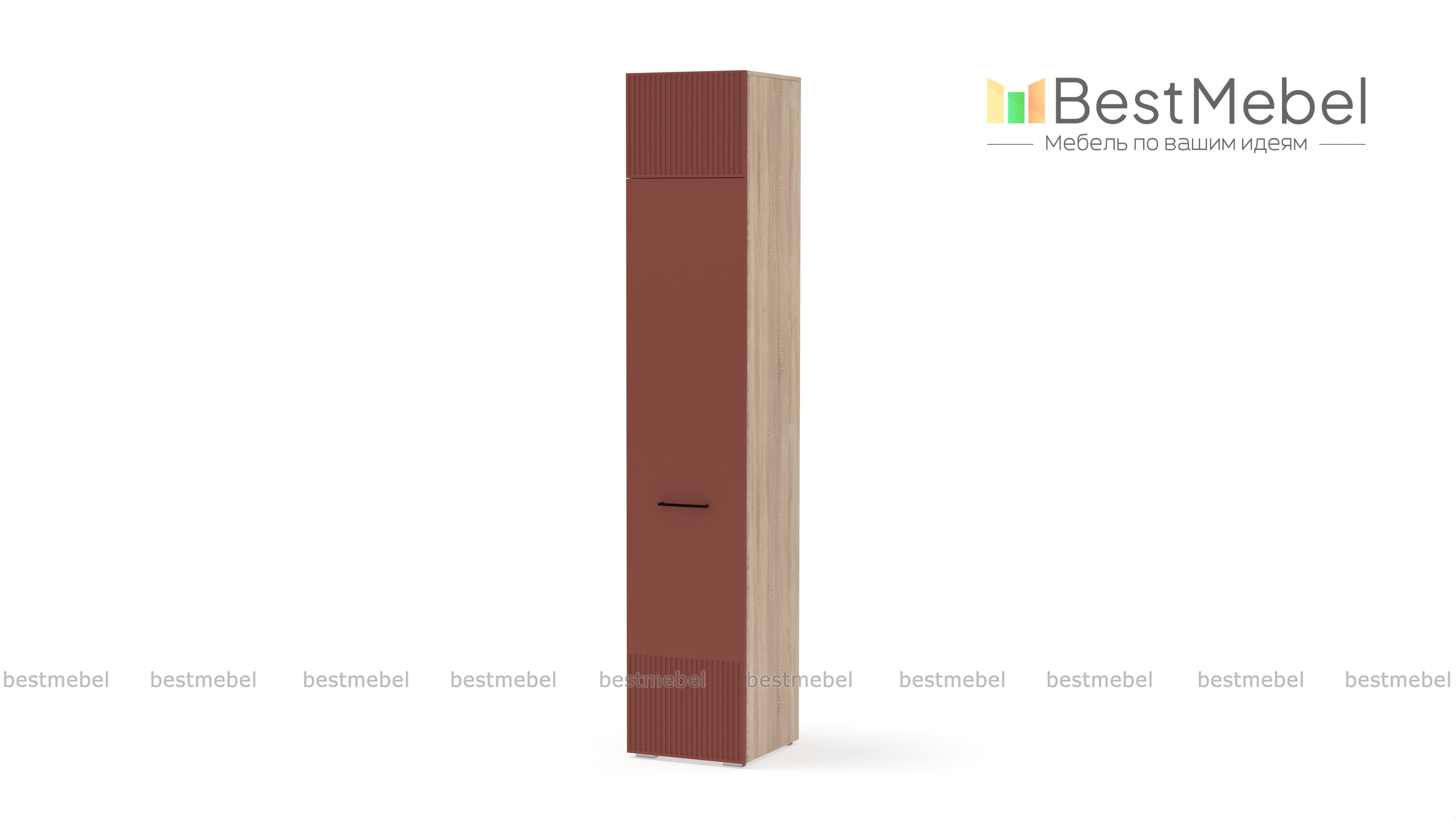 Шкаф распашной Декарт 7 BMS с одной дверцей и антресолью подходит для самых разных помещений. Высокий узкий шкаф с простым и выразительным благодаря фрезеровке дизайном оснащен необходимой для размещения вешалок с одеждой перекладиной и полочкой. Дополнительный отсек сверху значительно увеличивает пространство для хранения. Купить шкаф распашной Декарт 7 BMS вы сможете недорого в нашем интернет-магазине, подобрав подходящие именно вам цвета и размеры.