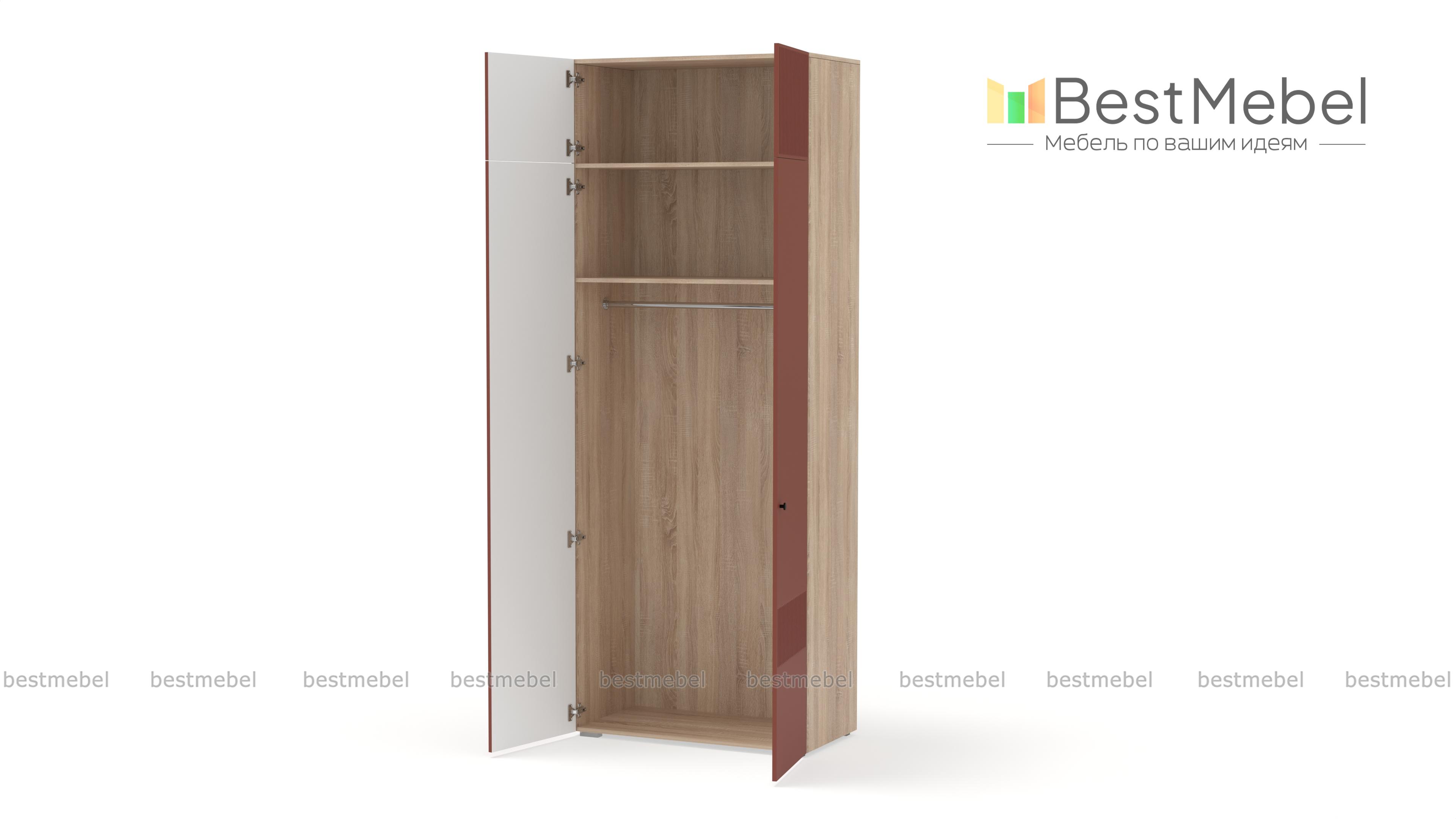 Шкаф распашной Джосс 8 BMS поможет эстетично организовать хранение, даже если пространство ограничено. За двумя дверцами, украшенными вертикальной фрезеровкой, — платяное отделение для одежды на вешалках и полка под коробки с аксессуарами. Дополнительный отсек сверху добавляет небольшому шкафу полезного объема, позволяя разместить сезонные или габаритные вещи. Купить шкаф распашной Джосс 8 BMS, изготовленный по индивидуальным размерам, вы сможете на сайте нашего интернет-магазина.