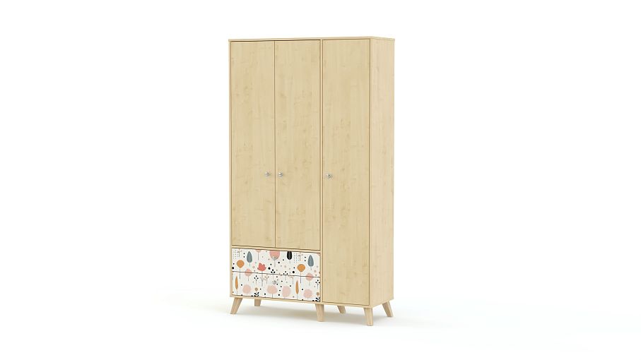Шкаф распашной Эльза 3 BMS поможет удобно и эстетично организовать хранение в детской. Разложить вещи по местам позволят закрытые секции, укомплектованные полками и штангой, а также два просторных выдвижных ящика. Трехдверный шкаф с высокими ножками выполнен в нейтральных теплых тонах из ламинированной ДСП, для декора использован стойкий рисунок-фотопечать. Купить шкаф распашной Эльза 3 BMS вы всегда сможете в нашем интернет-магазине, по желанию изменив цвет и размеры.