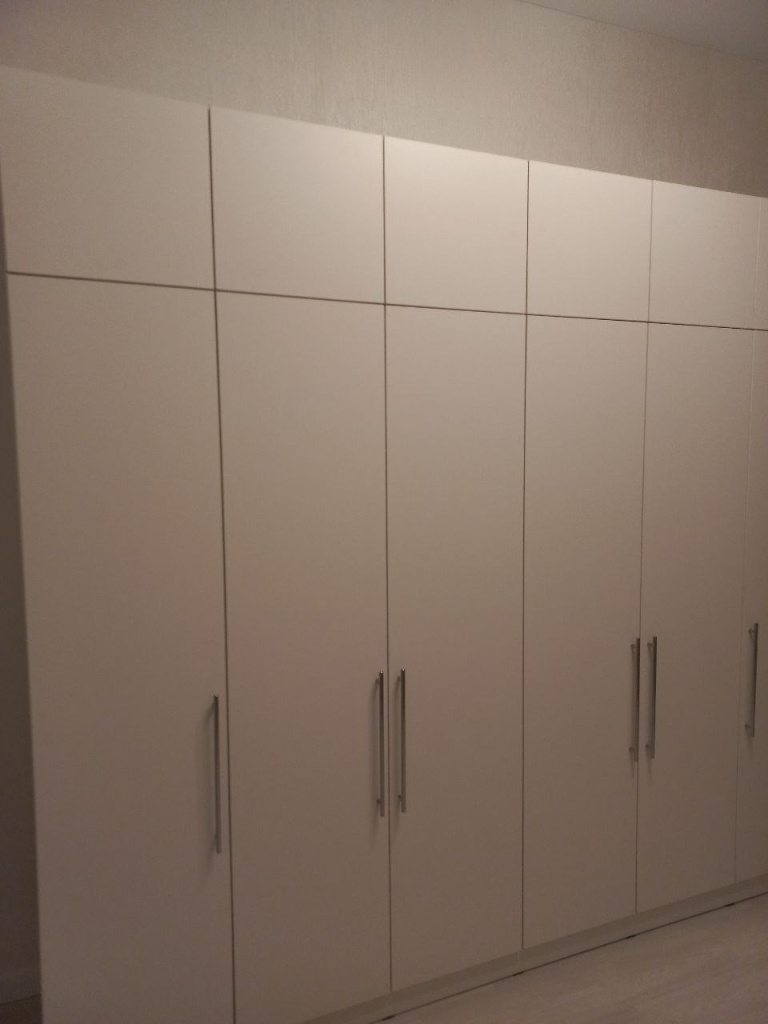Заказ 00000275042, шкаф распашной Остин Лайт 6 BMS (1700х2500х500). Это не первый мой шкаф с БестМебель. Классно, что можно придумать свое наполнение, очень удобно. В целом качество нормальное, кое-где есть микро сколы, но их видно только при ближайшем рассмотрении, но не при ежедневном использовании. Фурнитура приемлемая, только на верхних полках мы просили не устанавливать пуш-ту-опен механизм, иначе дверцы немного оттопыриваются. Но поскольку туда убраны редко используемые вещи, это не проблема. Так что могу рекомендовать, особенно если требуется какое-то нестандартное исполнение.