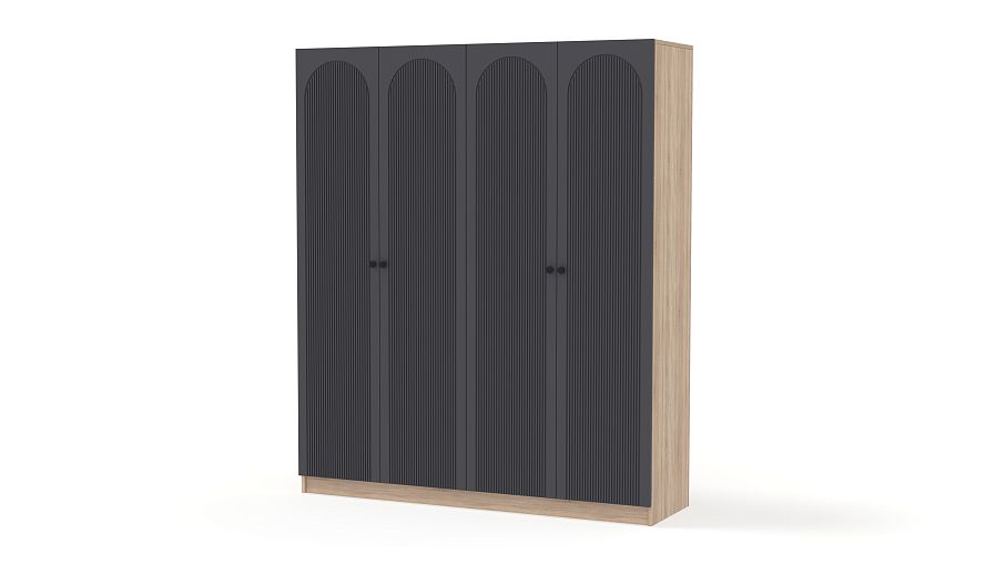 Шкаф распашной Рене 29 BMS — вместительный и очень стильный в темном оформлении. Фасад этой четырехдверной модели, изготовленной из ламинированной ДСП и МДФ, украшает геометричная фрезеровка с элегантными арками, на дверцы установлены небольшие круглые ручки. Два платяных отделения — оптимальное решение для хранения одежды, обуви и аксессуаров двух человек. Купить шкаф распашной Рене 29 BMS вы сможете на сайте нашего интернет-магазина, по желанию изменив размеры, цвет и компоновку.