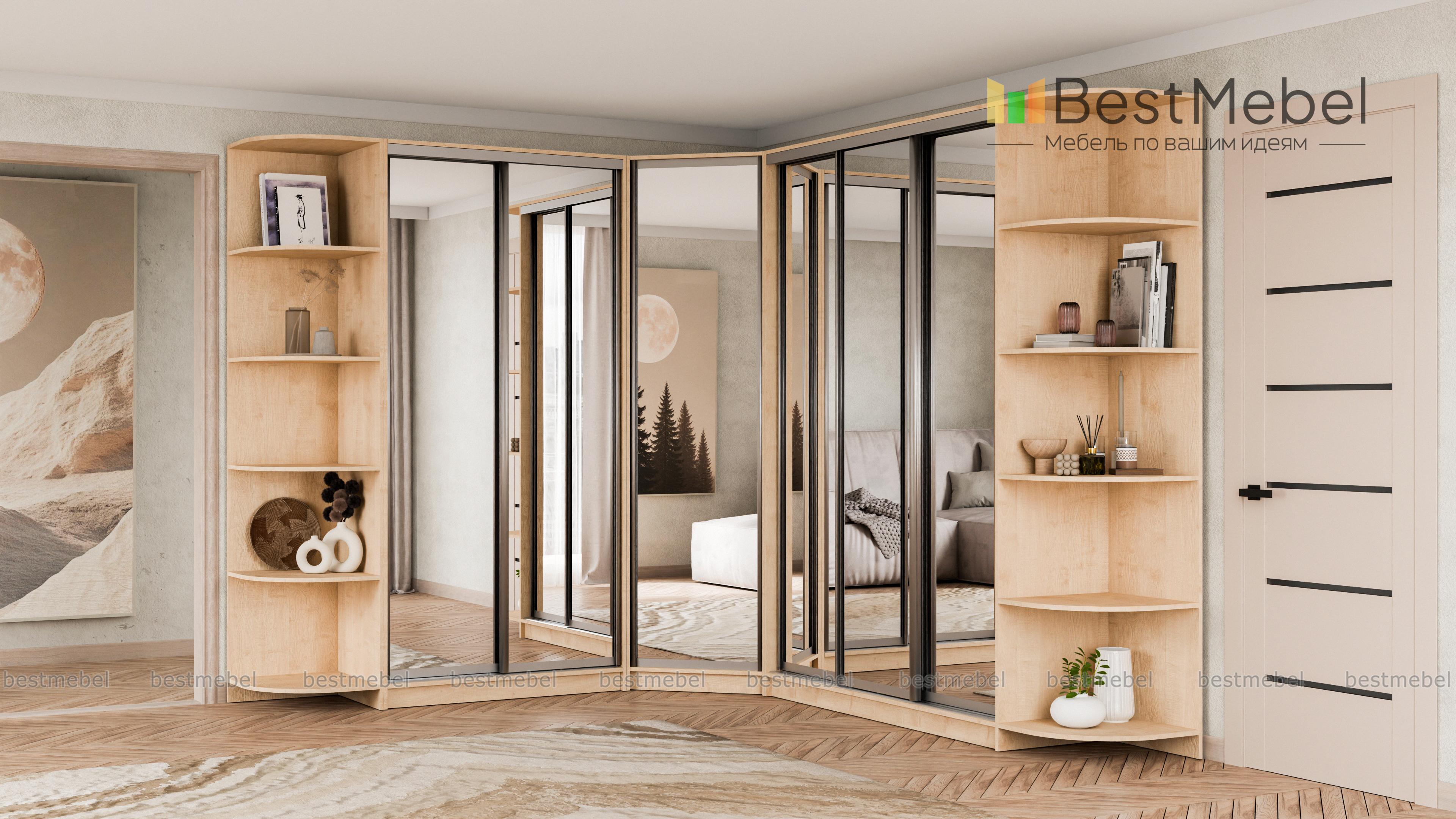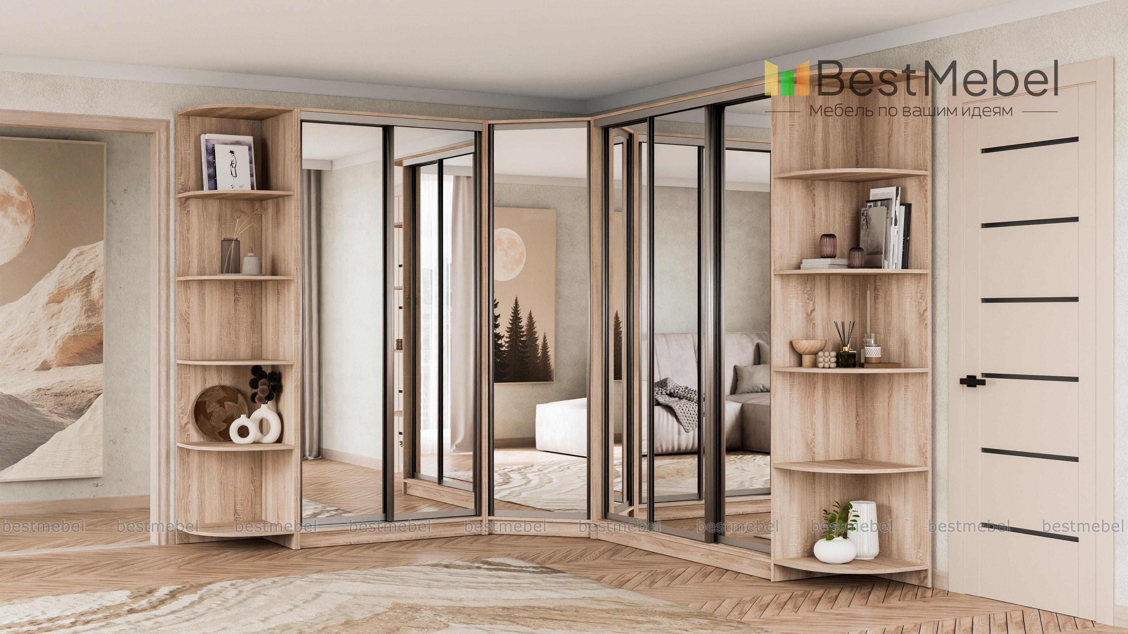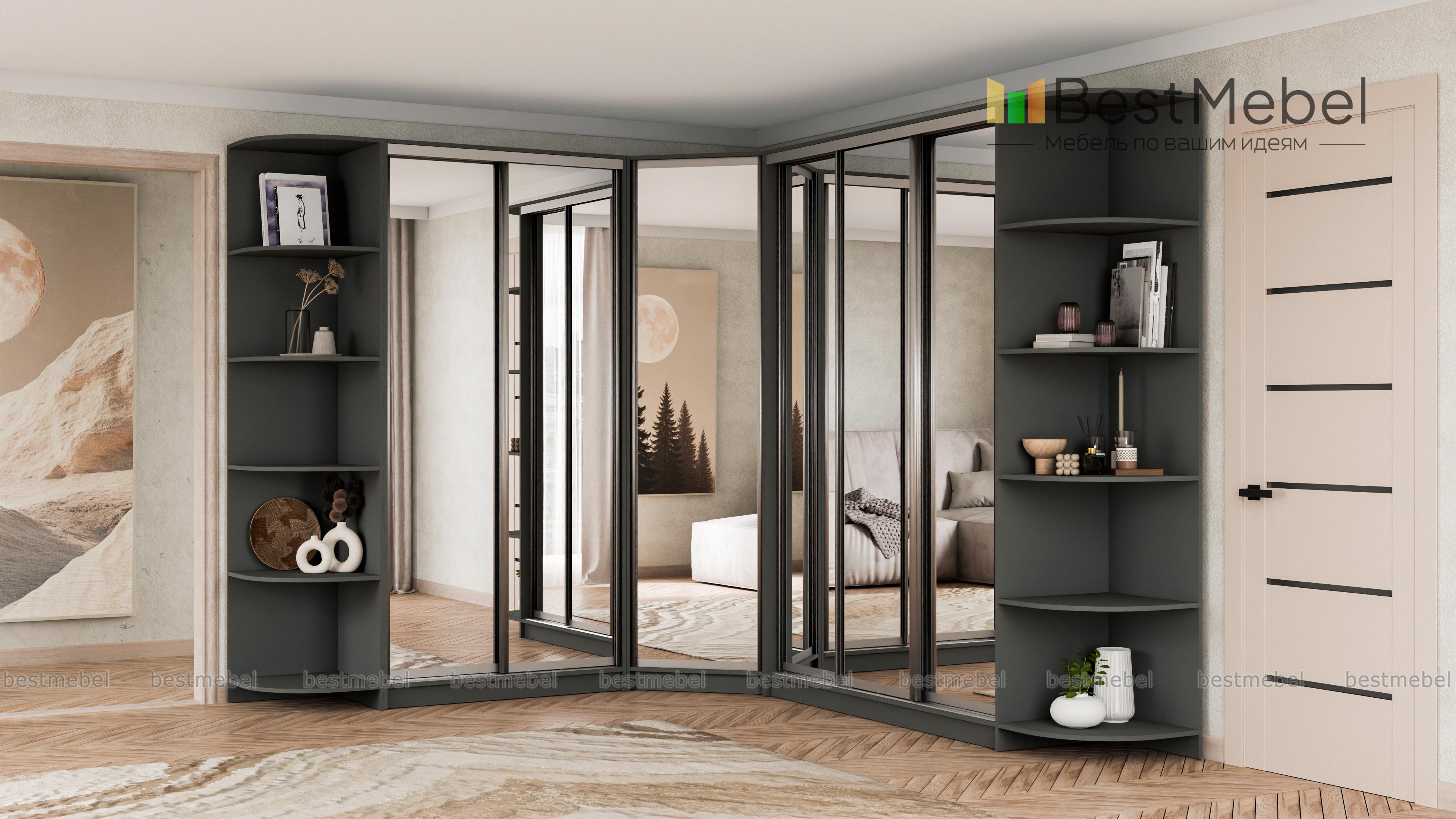 Шкаф угловой НКМ BMS – гигант для самого богатого гардероба. Даже если Вы активный любитель шопинга, всем приобретениям последних модных коллекций найдется здесь место. Супер вместительная угловая модель ослепляет сиянием зеркальных дверей-купе. А за ними прячется богатый ассортимент вариантов размещения одежды и обуви, это и штанги разной длины и удобные полочки. Над штангами предусмотрены антресольные отделы. Полностью зеркальные фасады сделают комнату просторнее и светлее. Элегантные дополнения в виде угловых элементов позволяют придать интерьеру нотку индивидуальности, используя декор. Купить шкаф угловой НКМ BMS можно быстро и недорого только у нас.