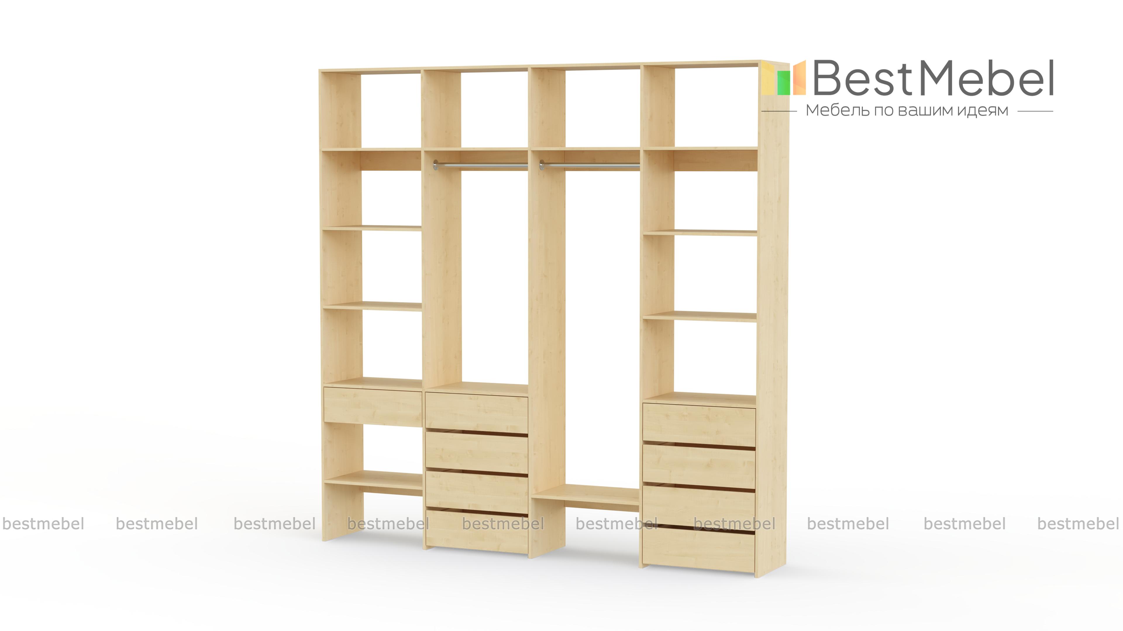 Стеллаж для одежды Мирта 19 BMS – практичный элемент интерьера современного дома. Обустроить функциональную и стильную гардеробную вам поможет комбинация из двух платяных штанг, бельевых комодов и открытых полок. Ламинированное покрытие не требует сложного ухода, а широкая цветовая гамма ЛДСП позволяет подобрать подходящий именно вам вариант. Купить стеллаж для одежды Мирта 19 BMS с изготовлением по индивидуальным размерам вы сможете в нашем интернет-магазине.