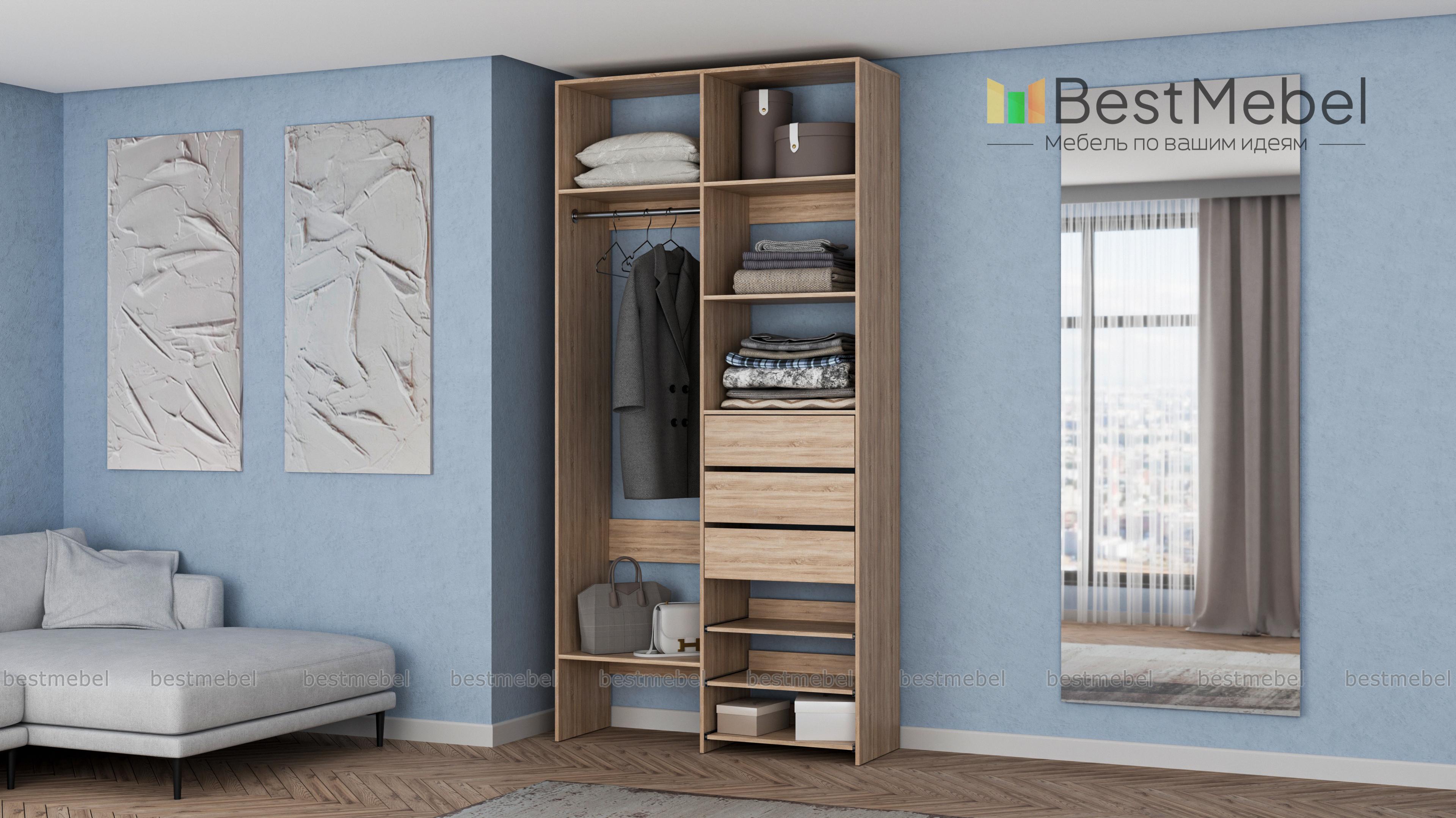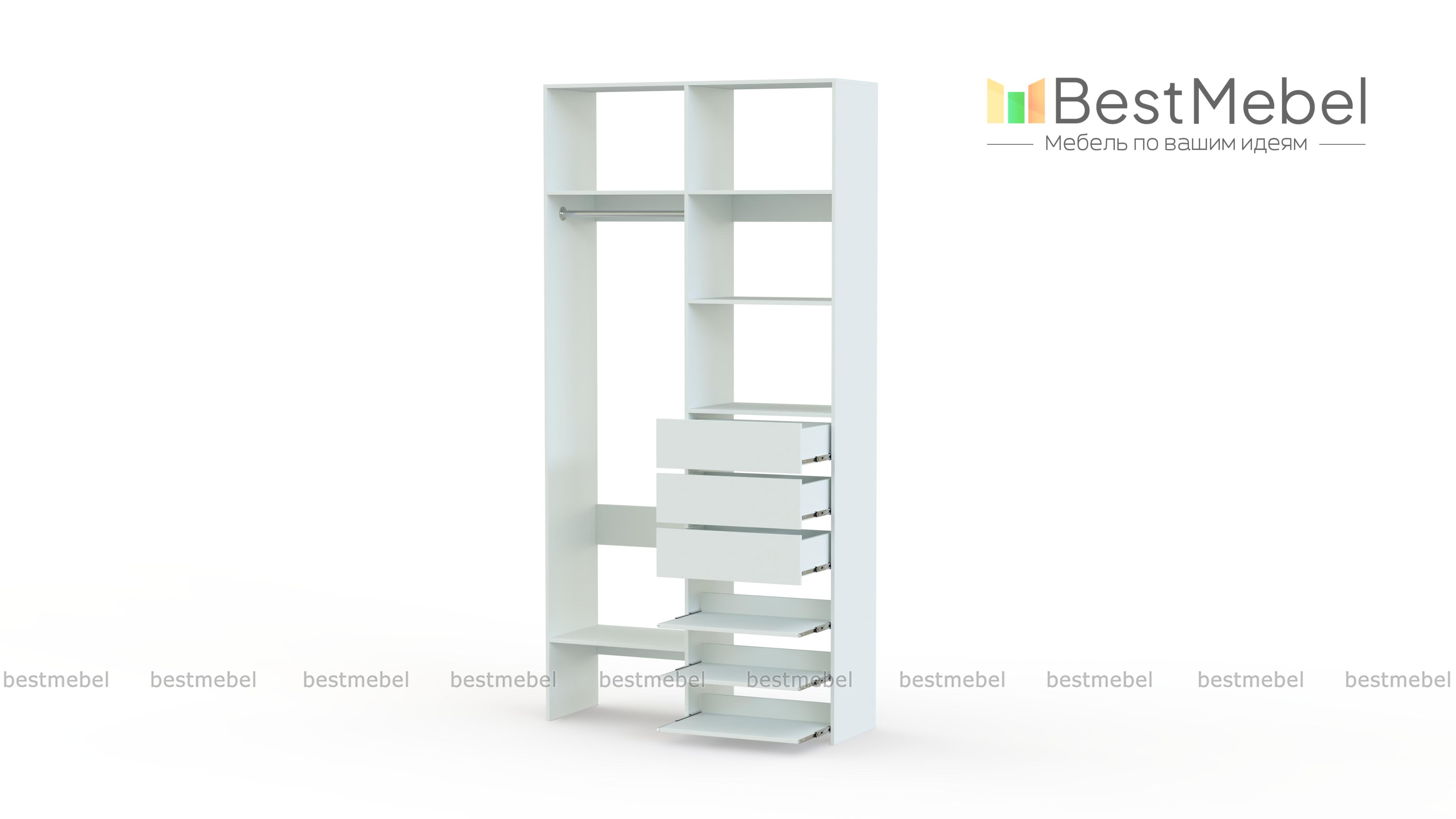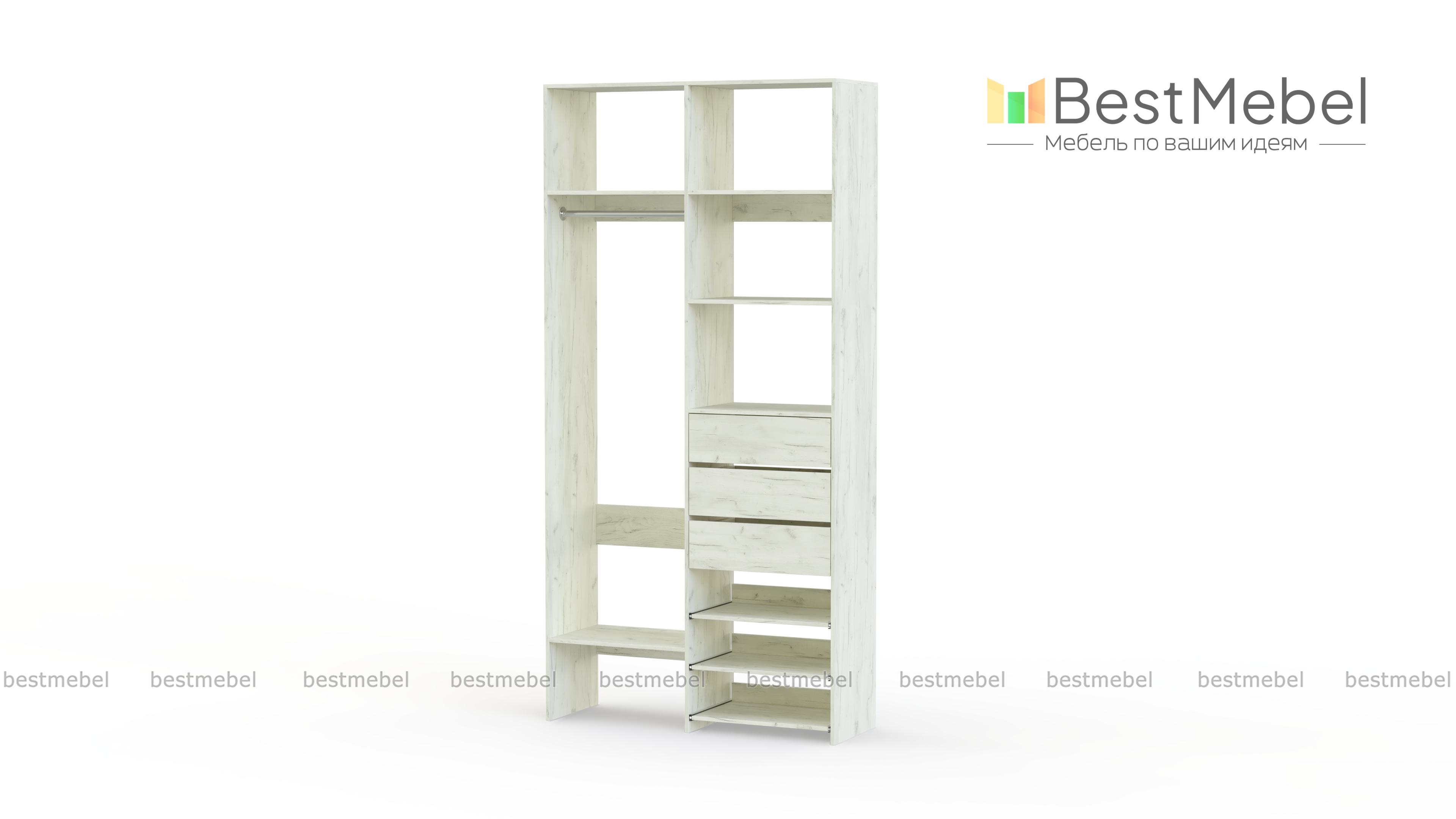Стеллаж для одежды Мирта 84 BMS обеспечит базовому гардеробу компактное и бережное хранение. Платяная штанга, три ящика, полки стационарные и выдвижные располагаются на удобной для ежедневного пользования высоте. Благодаря небольшой ширине стеллаж легко впишется в ограниченное пространство гардеробной, маленькой спальни или прихожей. Купить стеллаж для одежды Мирта 84 BMS вы сможете недорого в нашем интернет-магазине, выбрав подходящий размер и цвет.
