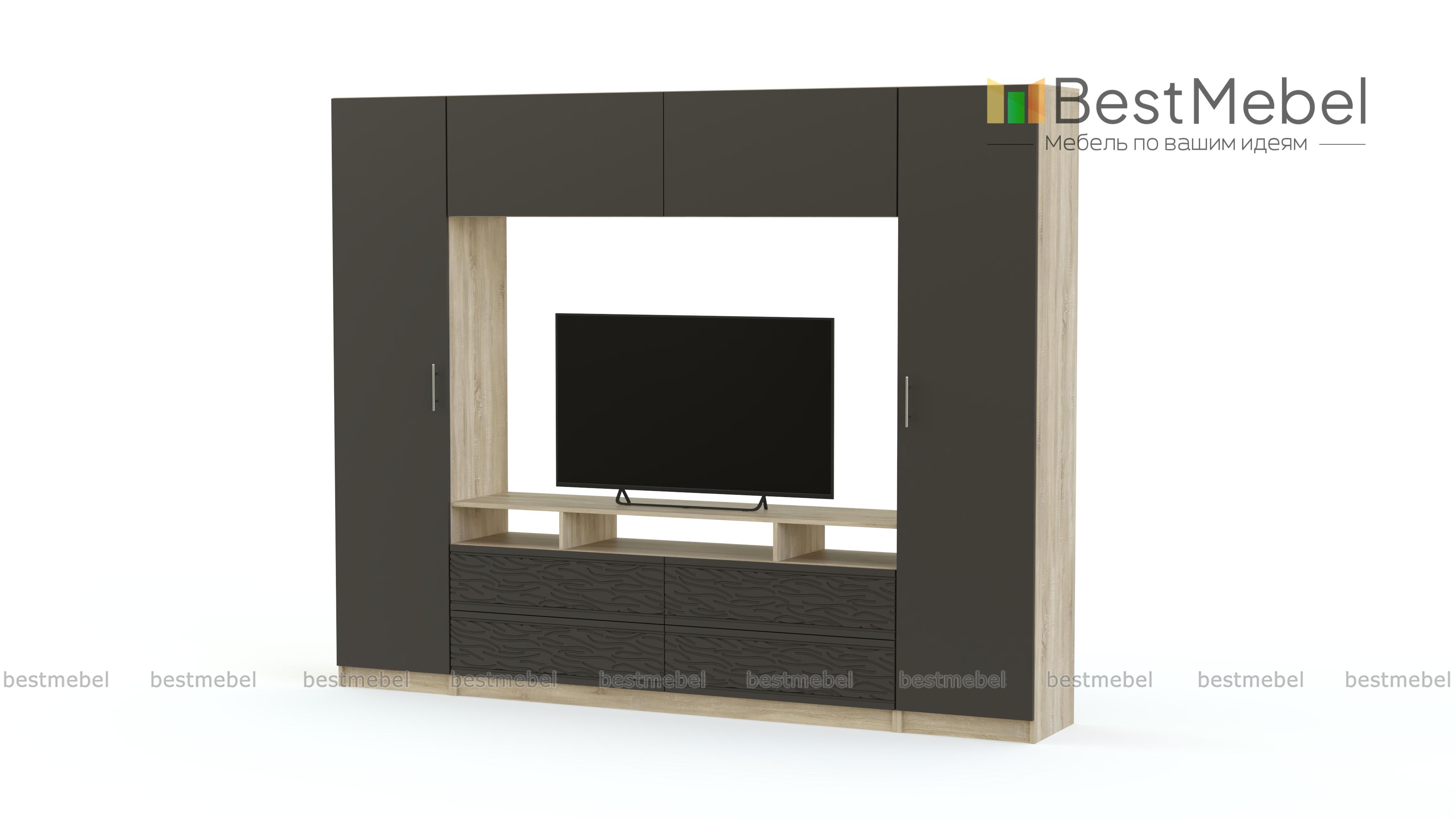 Стенка-горка Вельвет 8 Глянец BMS – лаконичный вариант для тех, кто предпочитает современные интерьеры в стиле минимализм и хай-тек. В единую композицию с нишей под ТВ в центре гармонично объединены колонки с полками, тумба и антресольная секция. Эффектные матовые фасады закруглены по краям и декорированы фантазийным рельефным рисунком, дверцы без ручек могут быть оснащены эргономичной системой открывания легким нажатием. Купить стенку-горку Вельвет 8 Глянец BMS вы сможете в нашем интернет-магазине, подобрав необходимые параметры.