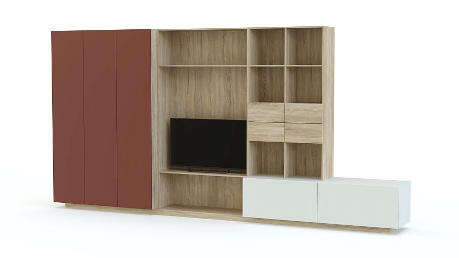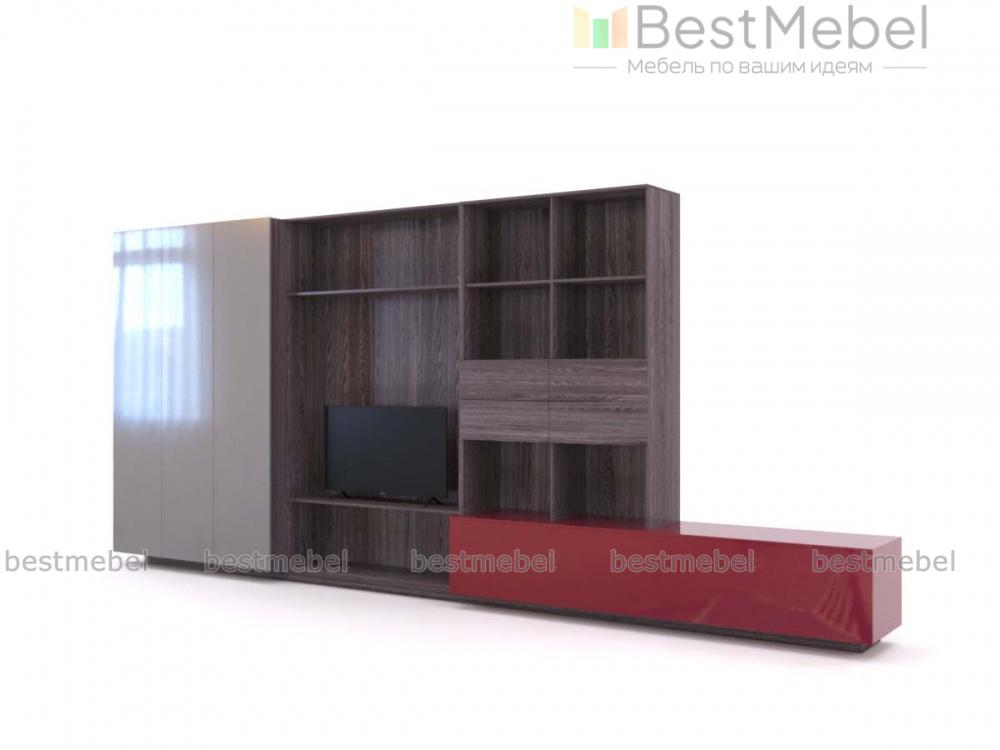 Стенка в гостиную Модерн 33 BMS эффектно сочетает в оформлении древесные тона и белый с ярким цветным акцентом. Крупногабаритная модель станет практичным дополнением и элементом дизайна гостиной в стиле минимализм. Оборудованная секцией под ТВ, выдвижными ящиками, глухими и открытыми полками для книг, домашнего текстиля и бытовых мелочей, стенка дополнена широкой тумбой, на которой смогут разместиться предметы декора. Купить стенку в гостиную Модерн 33 BMS приглашаем к нам в интернет-магазин по лучшей цене.