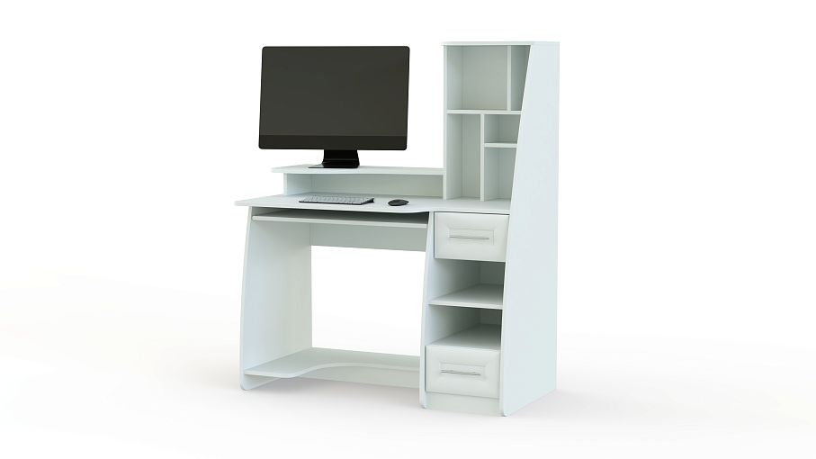 Очень интересная модель, она сочетает в себе современные тенденции с классическим стилем. В ней предусмотрено все для удобного пользования. Компьютерная техника размещается в специально отведенных местах, которые выполнены в виде ярусов. Кроме этого компьютерный стол Граф имеет большую тумбу с выдвижными и открытыми ячейками и верхнюю красиво оформленную полку. Такую модель можно купить для подростковой комнаты, в кабинет, квартиру-студию или приемную. Ее привлекательная цена позволит закупить такие модели для офиса.
