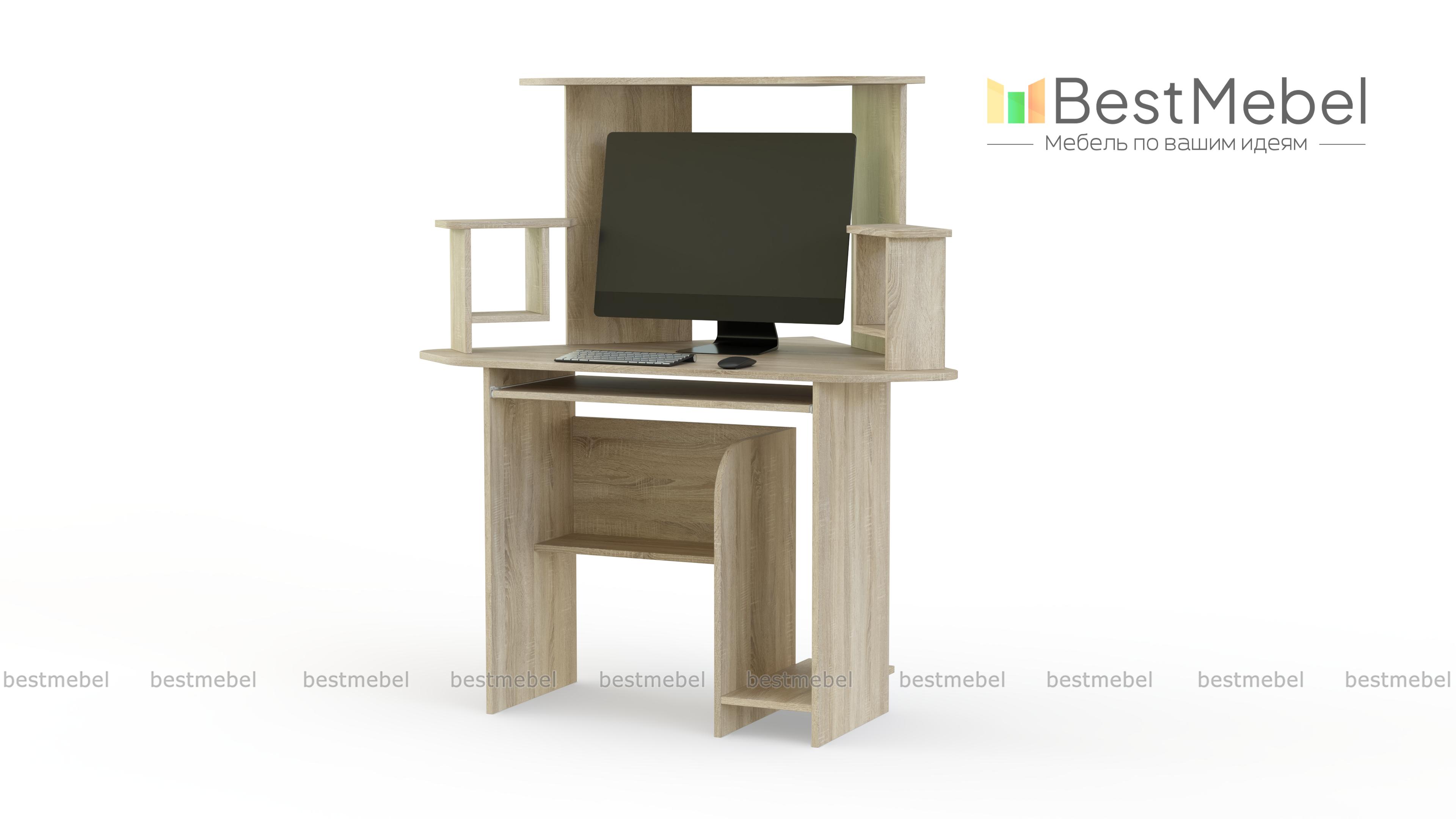 Стол компьютерный СКУ-1, выполненный в классическом стиле прекрасно подойдет для небольшой комнаты. Удобный угловой вид данной модели прекрасно впишется в Ваш кабинет и не займет много места. Наличие нескольких полок позволяет разместить диски, колонки и необходимые Вам мелочи. Очень хорошо организовано пространство под столом. Там есть полка, на которую можно положить пачку бумаги для принтера или парочку журналов. Если Вас заинтересовала данная модель, можно недорого заказать ее у нас.