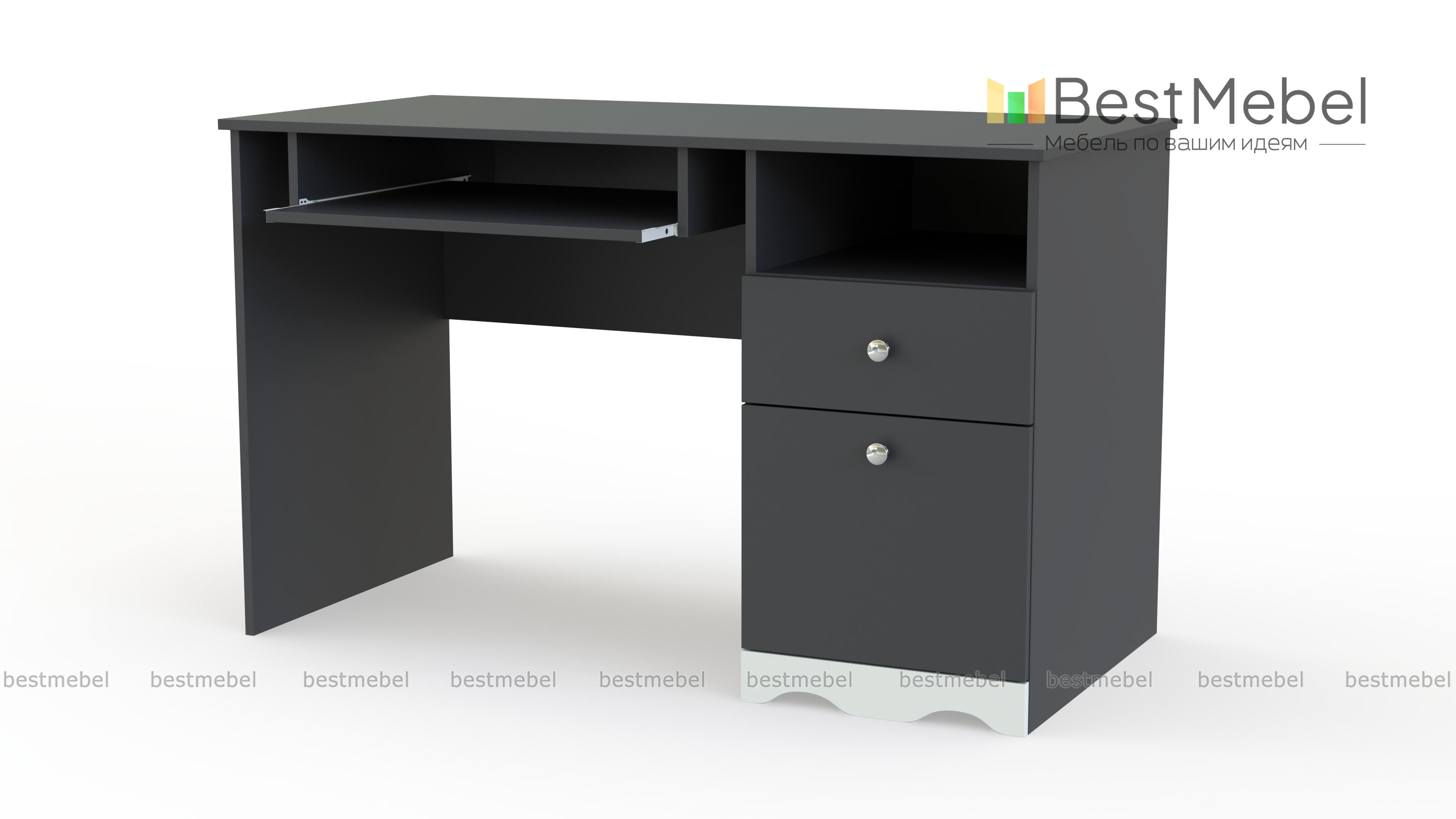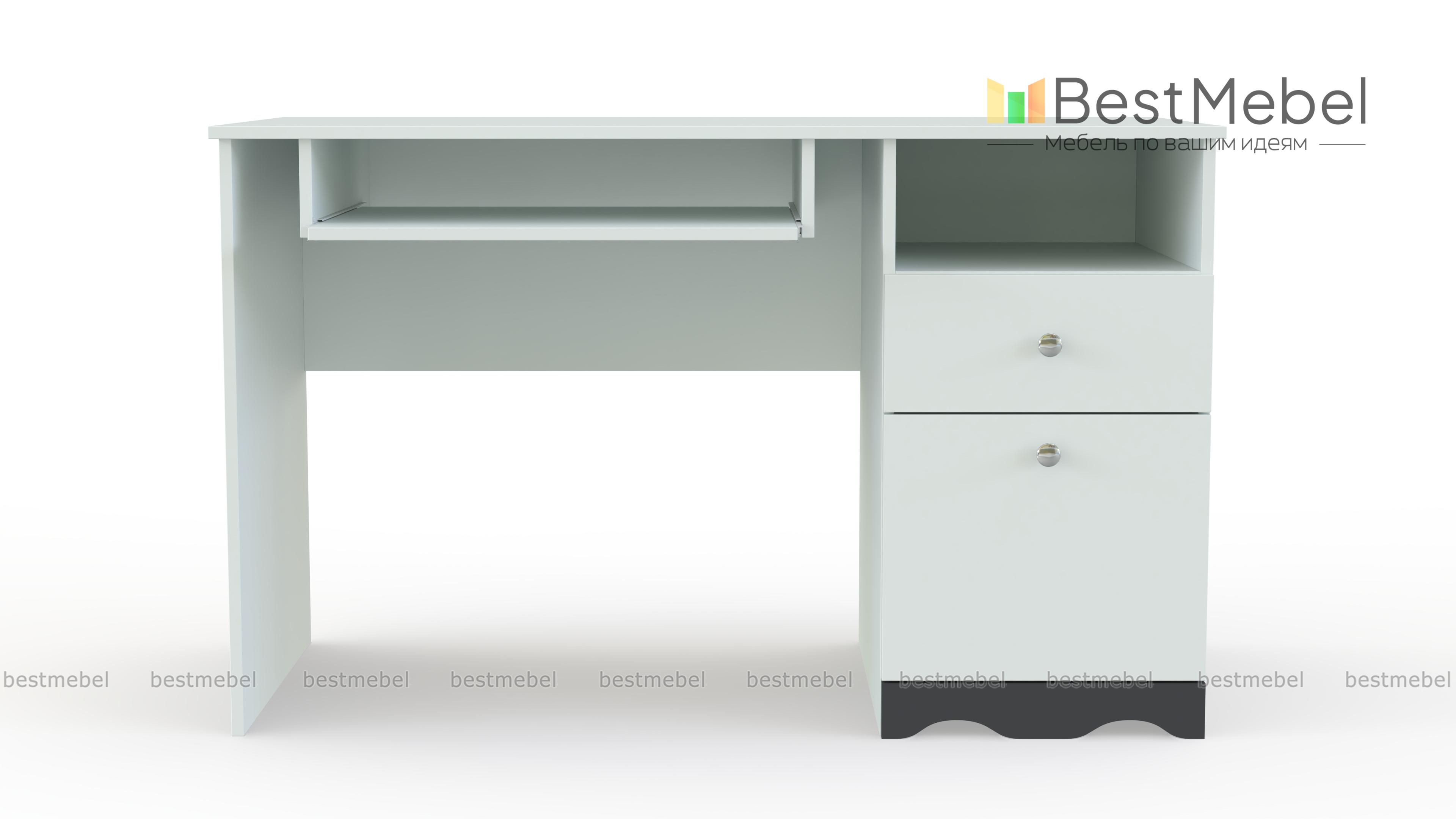 Письменный стол ИД.01.91а BMS выполнен с заботой к подрастающему поколению. Он оборудован вместительной тумбой, удобной столешницей и выкатной панелью для клавиатуры. Стол идеально впишется в интерьер детской комнаты, ведь здесь преобладают фигурные элементы, удобная фурнитура. Если подобрать к модели другое цветовое решение из ярких красок, то можно создать модель идеально подходящую в интерьер. Купить письменный стол ИД.01.91а BMS по низкой цене можете в нашем магазине.