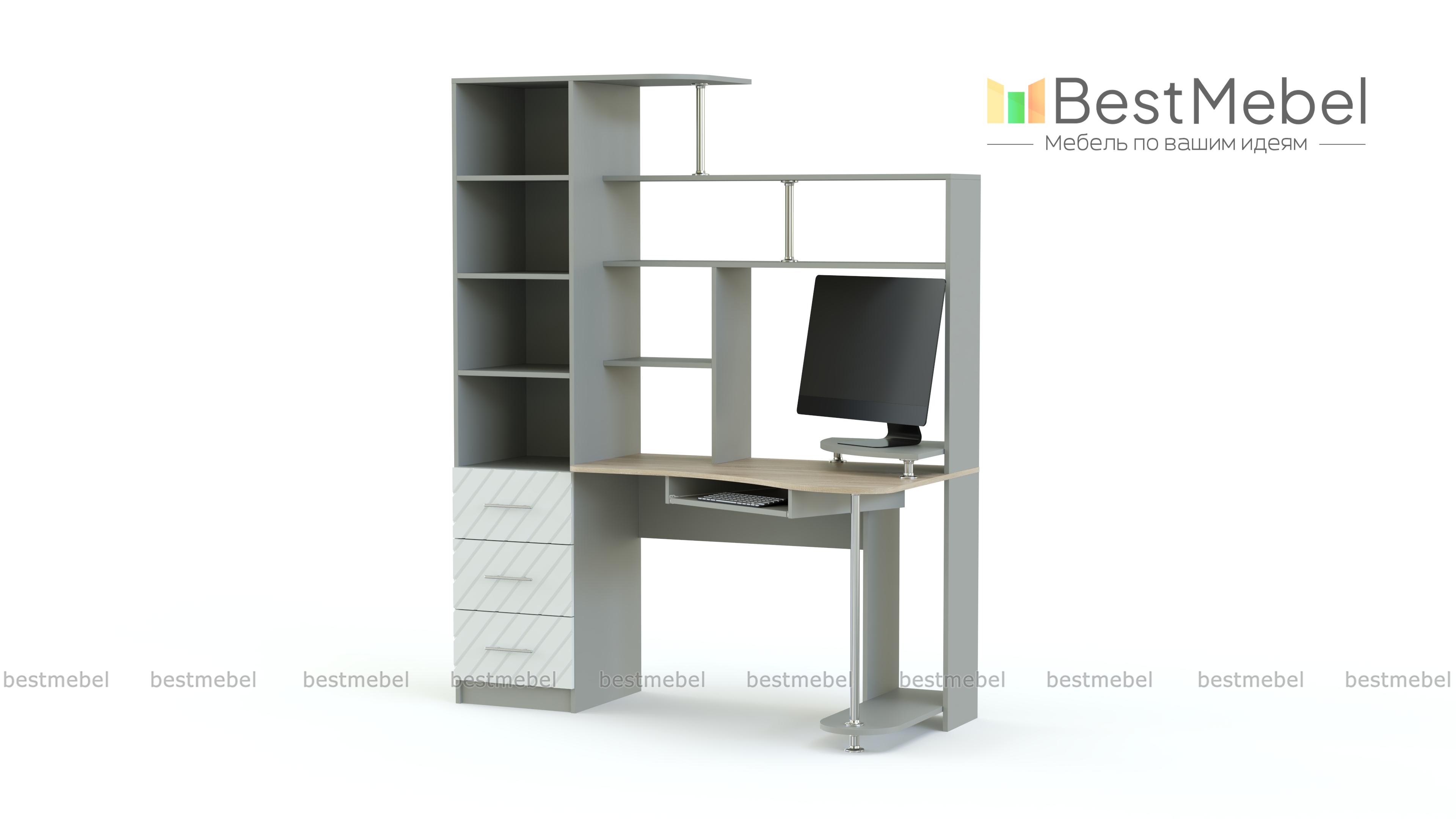 Стол Атланта BMS станет выбором тех, кто ценит функциональность и современный дизайн. Для максимально комфортной работы за компьютером модель оборудована столешницей эргономичной формы с подставкой под монитор и выдвижной панелью для клавиатуры. Для системного блока предусмотрена подставка на хромированной опоре, а книги, папки, канцелярские мелочи и предметы декора разместятся на открытых полках надстройки и в разноплановых отделениях пенала. Купить стол Атланта BMS, визуально легкий и практичный, вы сможете в нашем интернет-магазине.