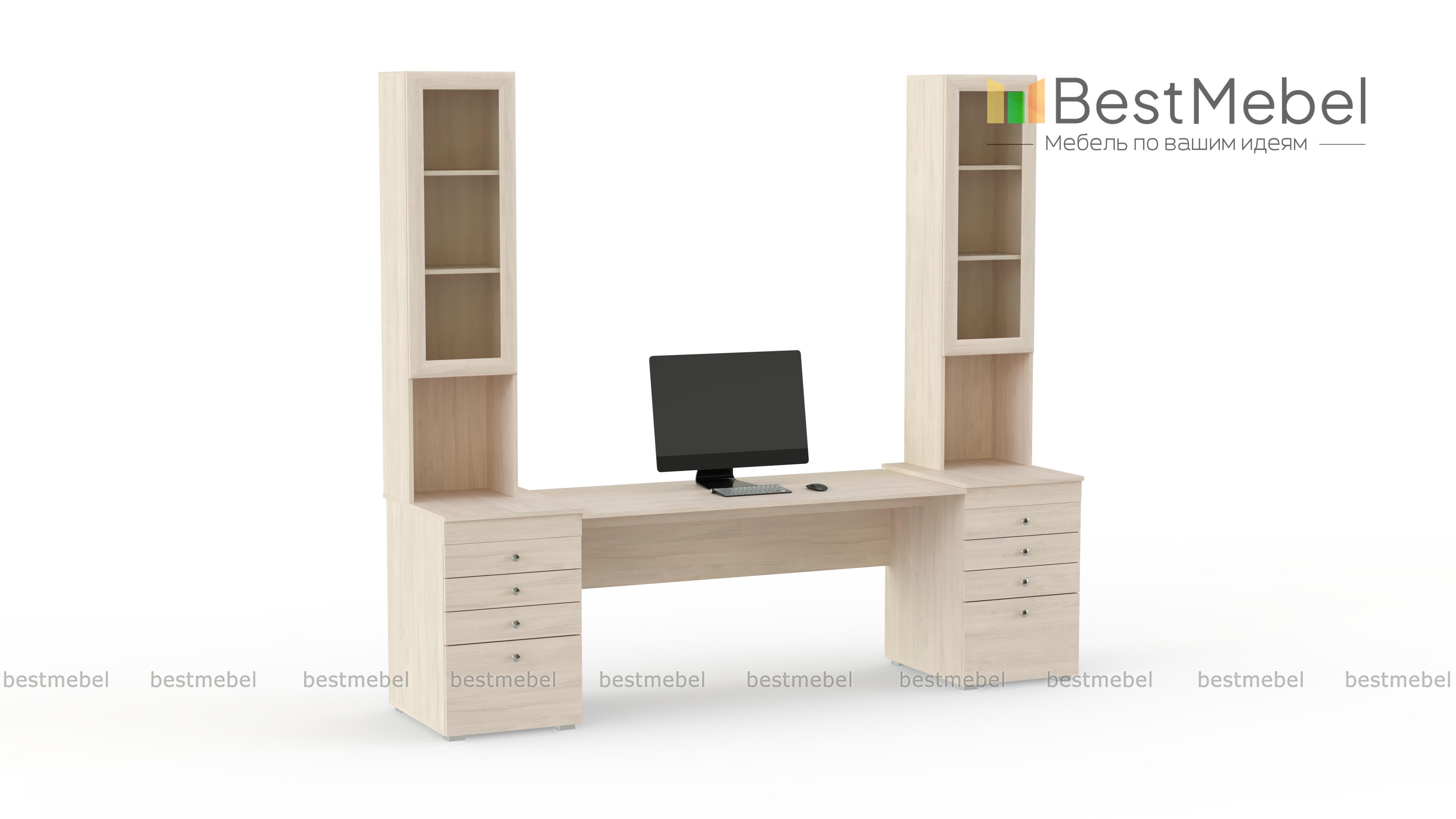 Стол письменный Дания 6 BMS поможет эффективно использовать пространство вдоль окна и обеспечить рабочему месту хорошую естественную освещенность. Композиция включает в себя широкую столешницу, две тумбы с выдвижными ящиками для хранения канцелярских мелочей и симметрично расположенные узкие витрины с нишами. Лаконичный по форме, стол выполнен в светлых древесных тонах, гармонично вписываясь в популярные скандинавские интерьеры. Купить стол письменный Дания 6 BMS приглашаем в наш интернет-магазин.