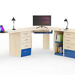 Угловой письменный стол для двоих Нико 88 BMS поможет сэкономить полезную площадь детской и оборудовать комфортную рабочую зону. Практичная форма столешницы позволяет задействовать неиспользуемое пространство, а для хранения учебных материалов и канцелярских мелочей предусмотрены тумба с выдвижными ящиками и комбинированный комод. В оформлении стола сочетаются нейтральные оттенки и цветные вставки. Купить угловой письменный стол для двоих Нико 88 BMS приглашаем в наш интернет-магазин.