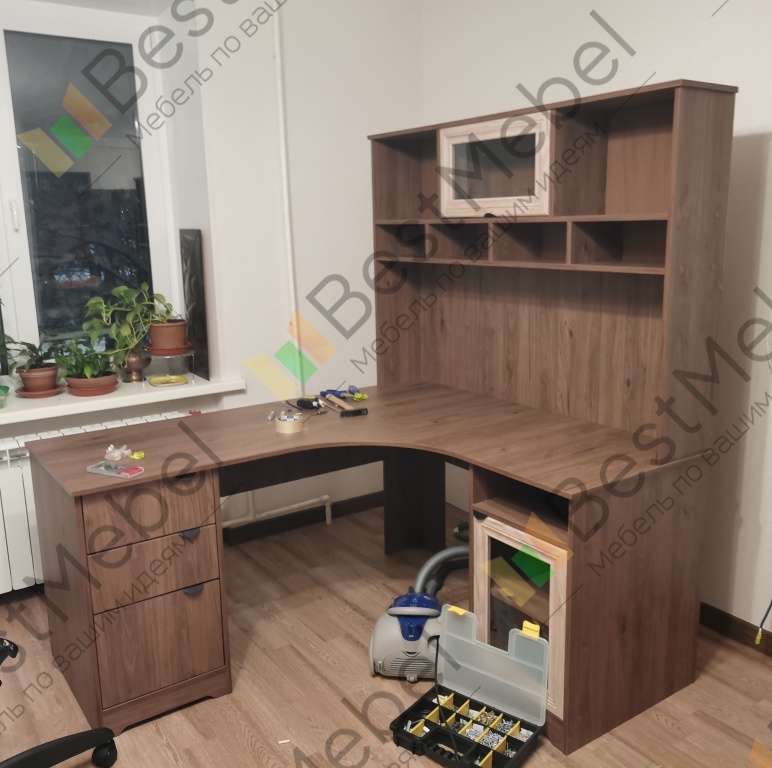 Приобрела стол данной модели в конце ноября 2025 года (заказ № 00000321456).Заказ делала в одном из офисов BestMebel, так как боялась ошибиться или просчитаться с размерами и конфигурацией сама через сайт - мне не была нужна приставная тумба, но нужны были ящики и тумба под единой цельной столешницей по моим размерам, плюс мне было важно живьем увидеть цвета и материалы. Эскиз мне составили быстро и четко по моим пожеланиям, менеджер была грамотна и терпелива (конечно же у меня были муки выбора цвета, ручек, фурнитуры, как без этого!).Отдельный респект за то, что перед запуском в производство вам направляют по почте на согласование технический чертёж с размерами, который получился по итогам составленного при заказе эскиза, и на этом этапе можно что-то поправить. В этом плане опасения насчет дальнейших самостоятельных заказов через сайт отпали.Производство и доставка были осуществлены без задержек, в обозначенные изначально сроки. Доставка порадовала аккуратностью, все было цело-невредимо, а еще человеческим согласованием времени доставки, что для работающего человека вот реально важно.Сборкой занималась сама, и для этого к доставленному товару прилагается очень удобная схема (не та, что распечатанная, а та, что по qr-коду на распечатке). Все доставленные вам детали пронумерованы, и каждую из деталей вы можете по номеру найти на интерактивной схеме и увидеть, как и где она должна быть расположена. Короче рукодельники получат от сборки отдельное удовольствие! Все необходимые отверстия уже просверлены, все необходимые крепежи в нужном количестве (и даже с небольшим запасом) приложены. Собранный стол полностью соответствует моим ожиданиям, качество материалов порадовало (первые пару дней был запах дерева в комнате, но никаких химических запахов), при сборке проблем (типа кривого распила) не возникло. Рекомендую!
