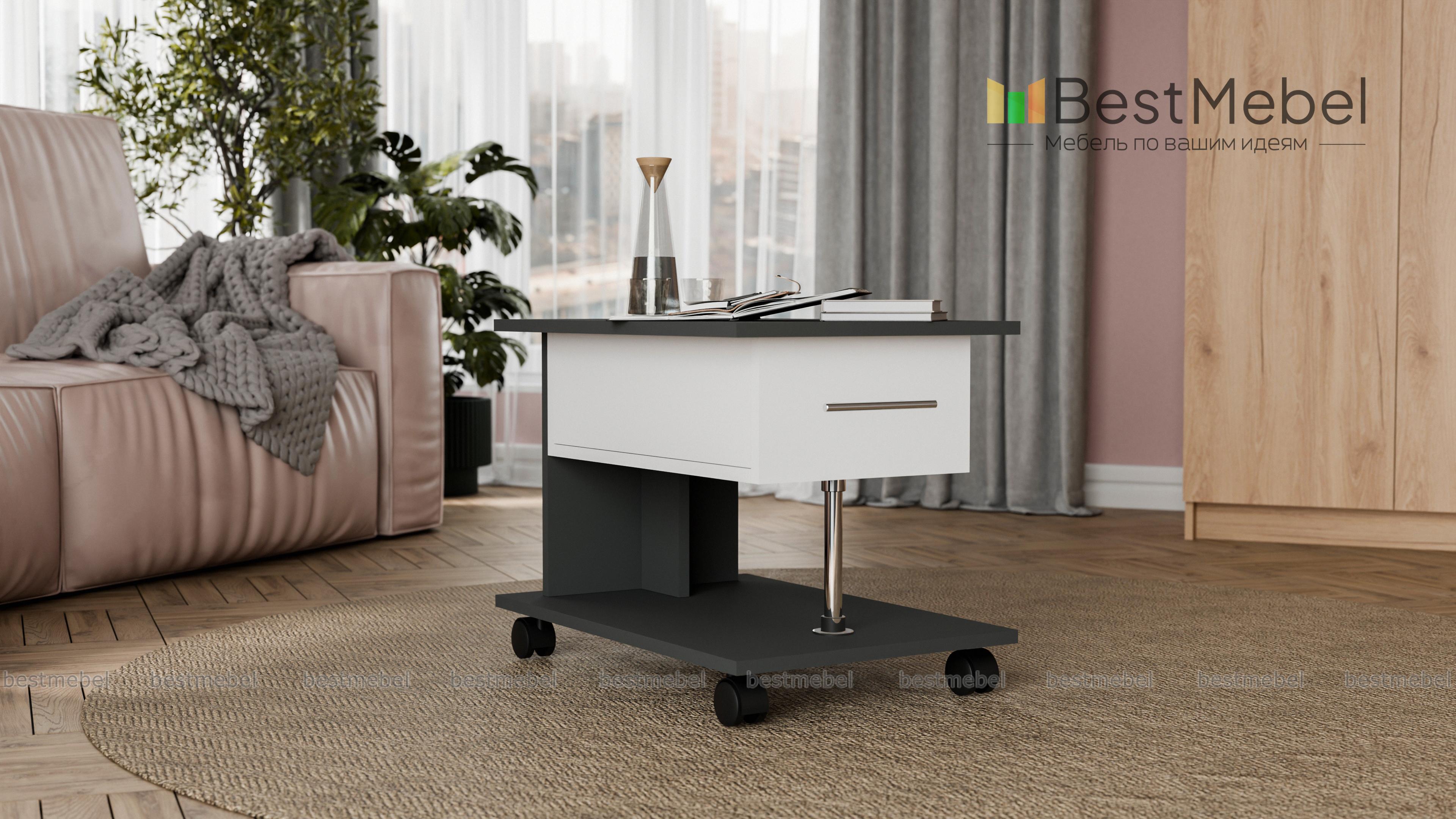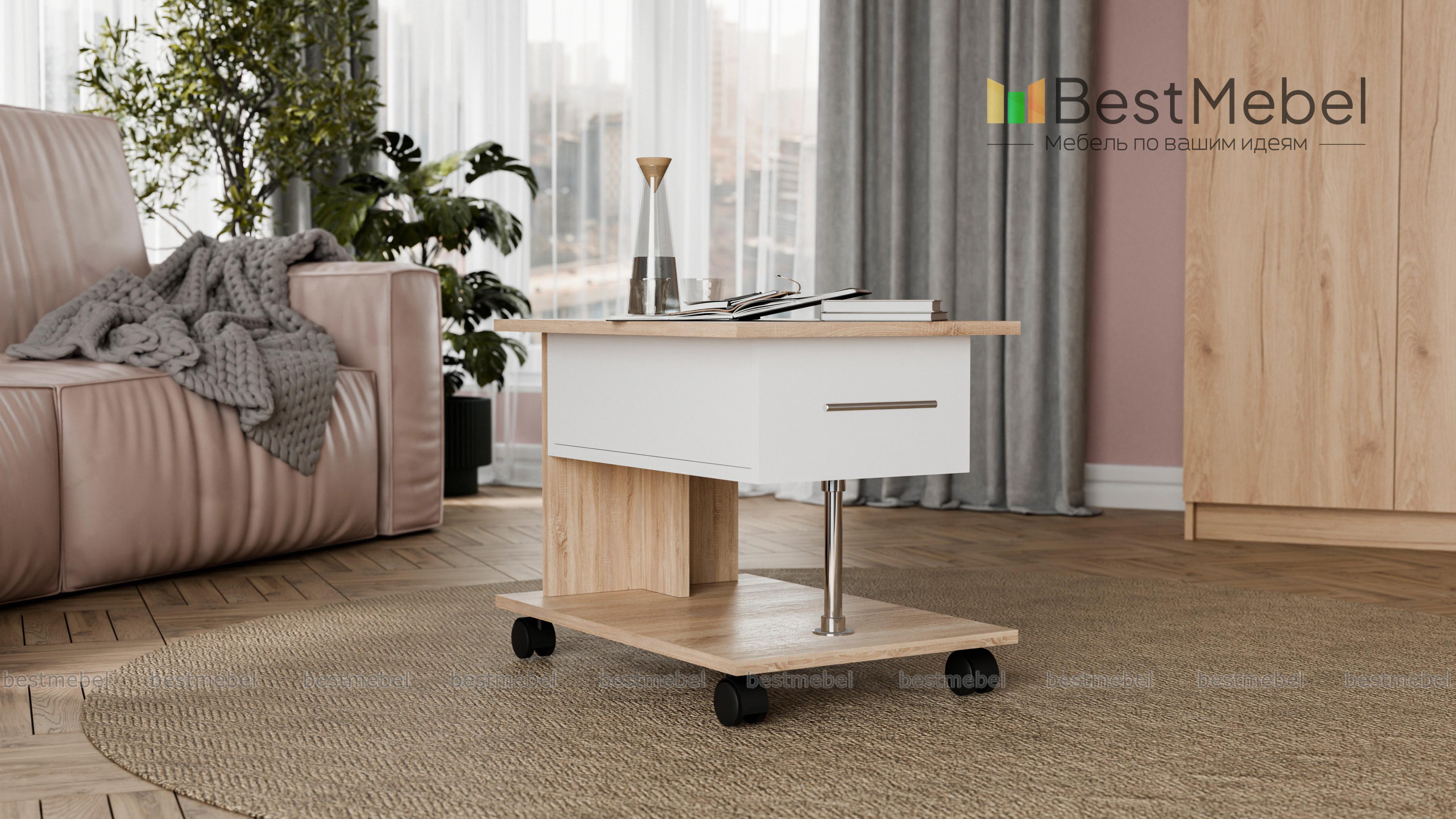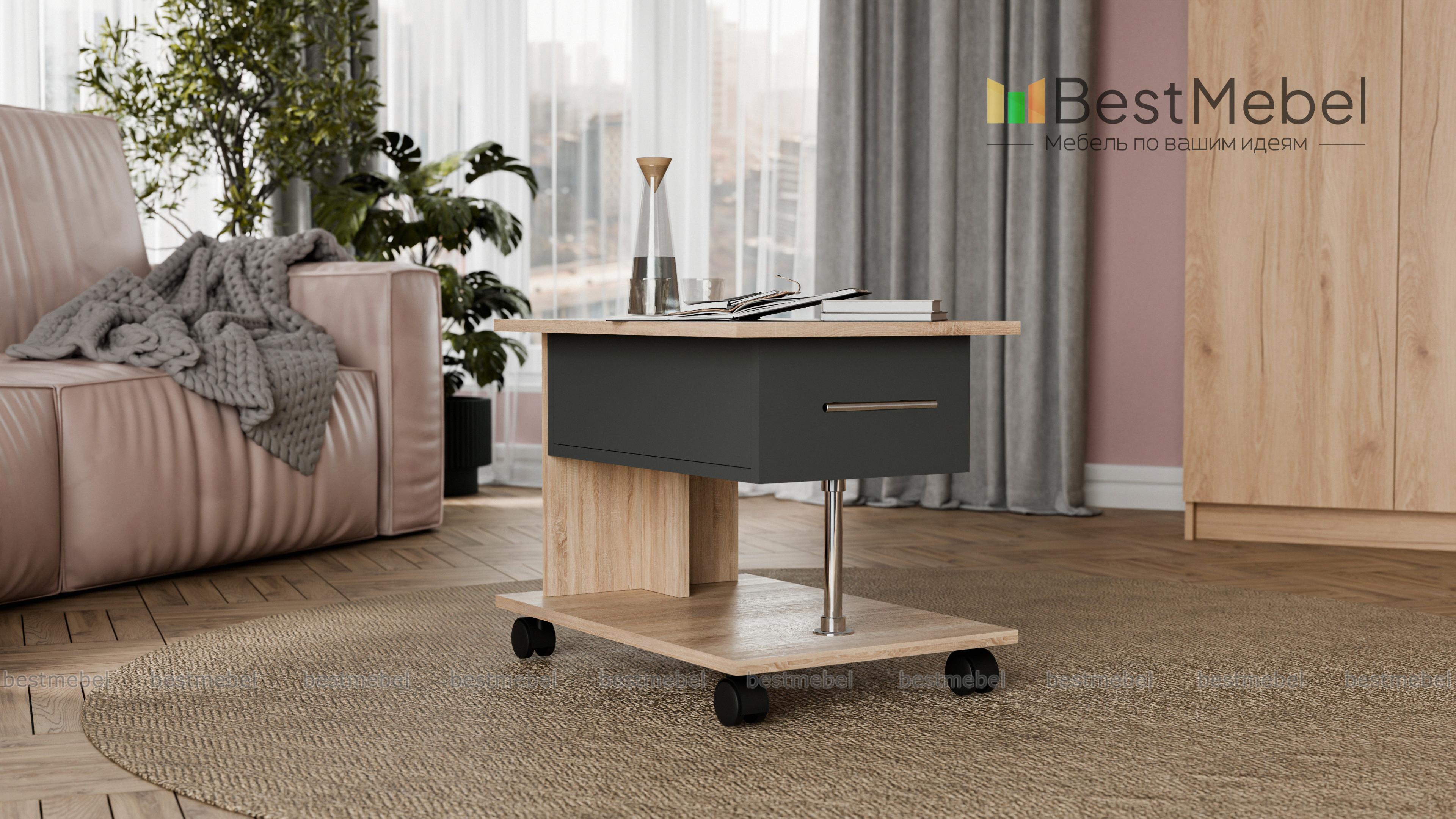 Журнальный стол 06 BMS – это актуальный дизайн и высокая функциональность. Модель выполнена в контрастных оттенках под древесный массив и отличается характерной для современных интерьеров строгой геометрией. Просторная прямоугольная столешница дополнена незаменимым для хранения мелочей выдвижным ящиком, а основание оснащено колесиками для легкости перемещения. Купить Журнальный стол 06 BMS для домашнего или офисного интерьера приглашаем в наш интернет-магазин.