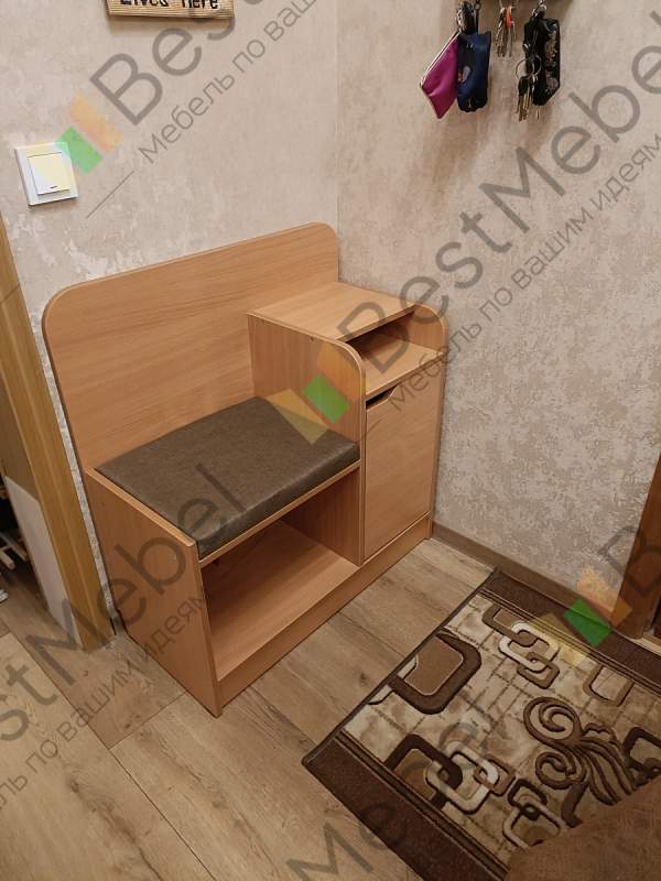 Прихожую заказали давно, а тумбу я увидела за 2 дня до доставки. Заказала под цвет прихожей, расстарались, и привезли в 1 день. Тумба маленькая, но основательно сделана, мама 120 кг сидит и тумба ни ГУ ГУ. Молодцы, спасибо🙏💕.