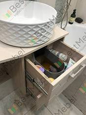 Отличная тумба, поставила её на чёрные металлические ноги и поменяла ручку, идеально вписалась в спальню, в качестве прикроватной тумбы.