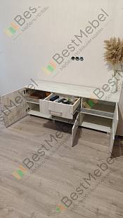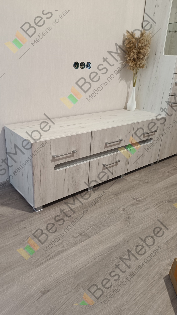 Интересная модель благодаря центральной вставке и округлым формам боковых дверей, хорошо смотрится в комплекте с другой корпусной мебелью. Также тумба очень вместительна.