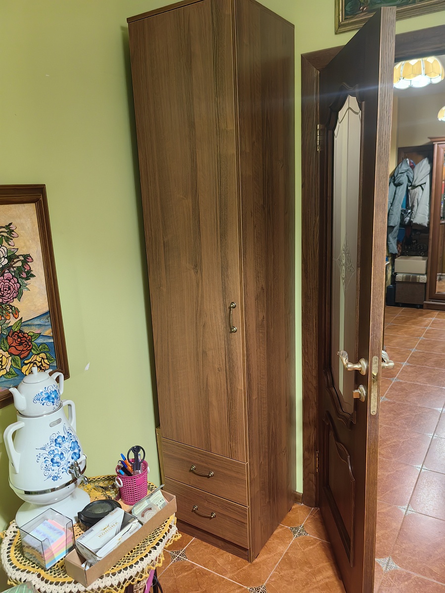 Выбрала шкаф, заказала, оплатила в личном кабинете. Мне перезвонил менеджер, и мы обговорили детали. В ходе диалога, мне понадобилось внести несколько изменений по поводу наполнения изделия, потом я ещё раз звонила и просила кое-что изменить. Разница в цене получилась в мою пользу, вернули не сразу, похоже, что про меня забыли. Все сотрудники очень терпеливые и вежливые. Ждала изделие ровно столько, сколько мне сказали при первом общении. Когда шкаф был готов, меня оповестили, что передают в доставку. Доставка была Деловыми линиями, а это лотерея. Приехал равнодушный водитель, сказал, что у нас без подъёма на этаж и выгрузил детали из машины. Когда муж забирал последнюю коробку, водитель напомнил, что подъём оплачивается на месте. Через несколько дней со мной связался сборщик, и мы договорились на удобное время. Пришёл весёлый мужчина, который собирал шкаф и подпевал своему телефону, на котором он включил музыку на время работы. К работе подошёл творчески, максимально удобно установил шкаф так, что он стоит надёжно. Выглядит вполне крепким.  Единственное, что я не разобралась, как за покрытием снаружи ухаживать.  Обычной тряпкой с водой не удалось оттереть брызги, после того, как животные отряхиваются.Хотелось бы понимания, что за покрытие используется по периметру дверей, потому что мне нужно было немножко другое. Плюс скудный выбор ручек для данной модели, из-за чего у меня в комнате этот шкаф не гармонирует с другой мебелью. В целом я довольна. При необходимости новой мебели, буду обращаться ещё.