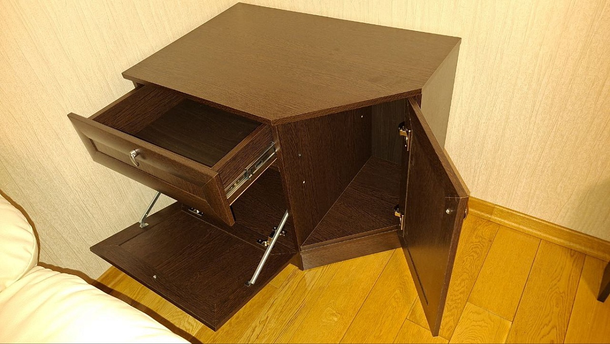 Тумба угловая Лара 4 BMS (750х600х500), Заказ 00000340371Тумба понравилась, удобна в использовании, хорошо вписалась в наш интерьер. При сборке, правда, пришлось попотеть из-за того, что схема сборки была приложена в отвратительном качестве (видимо, печать производили на старом копире и основные линии контура тумбы были видны гораздо хуже, чем штриховка, оставляемая копиром). Также имейте в виду, что разметка для фурнитуры делается только под стандартную фурнитуру, и если Вы при заказе вносите изменения в этой части (например, выбрали крепеж для ящика с доводчиком), будьте готовы к тому, что разметку Вы будете делать самостоятельно