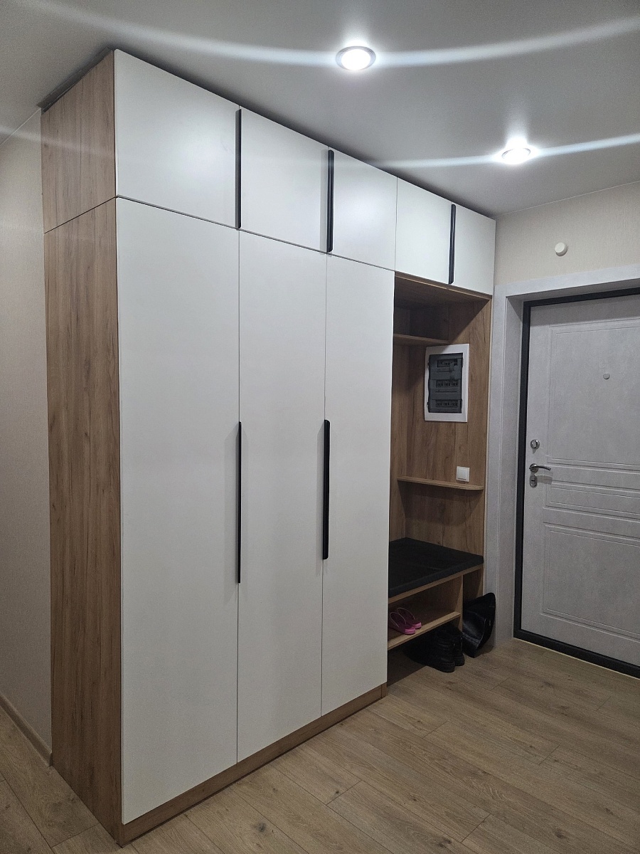 Заказ 00000293799, изделие ИН Прихожая (2280х2470х600)Очень оперативно выполняют как чертеж по индивидуальному эскизу, так и сам заказ. Доставили через 1,5 недели после согласования проекта прихожей.Сегмент мебели цена-качество. Нас устроило полностью. Жалко, что нельзя выбрать полки со скрытым опиранием внутри шкафов, придется самим заменить крепления. Рекомендую, будем и в дальнейшем свои идеи воплощать в Bestmebelshop.цена ноябрь 2025г. 91664р.Плюсы: цена, можно выбрать качественную фурнитуру (петли немецкие), есть шоурумы-можно пощупать материалыМинусы: нужно быть готовым, что качество ЛДСП не на высшем уровне, но достаточное для эксплуатации