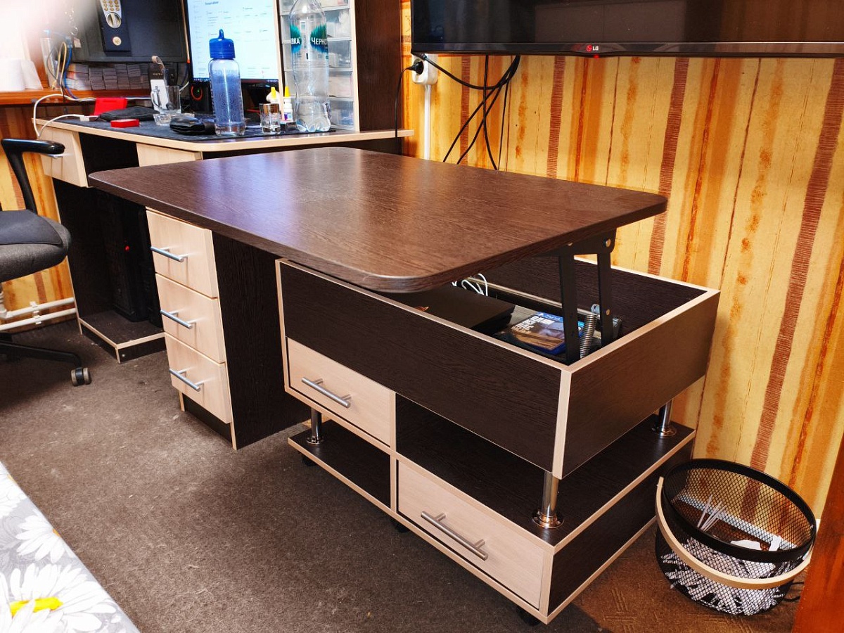 Хороший стол! Изготовили вовремя, очень удобно, что можно выбирать размеры, цвета, собирали самостоятельно, немного помаялись, потому что инструкции по сути нет, но справились!Кое-где доработали напильником: выпилы под плинтус сделали самостоятельно под размер и форму именно своего плинтуса, не стали ставить заднюю стенку снизу, чтобы не загораживать розетку, которая как раз там, с одной стороны в боковой панели у стены сделали небольшой выпил под шнур от лампы. Также важно понимать, что при стандартных размерах высоты, монитор 24” в полку не войдет! Даже у которого стойка регулируется по высоте и в самом нижнем положении - не войдет все равно. Если планируете ставить его туда - ставьте при заказе высоту больше стандартной и уточняйте высоту именно полки. Мы же решили этот вопрос покупкой кронштейна, который впилили прямо в столешницу (благо весь инструмент дома есть). По итогу на самом деле так даже лучше. В целом довольна очень, при очень скромных возможностях площади, которая у меня есть под рабочее место дома, при помощи этого чуда-стола я выжала из этой площади все! И в интерьер вписался как продолжение консоли под телевизором и остальной мебели. К качеству в целом, срокам изготовления и доставки претензий нет.