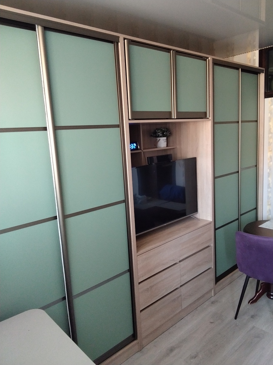 Хорошая стенка. Удобная. Качество хорошее. На открытые полки добавили дверцы. Сделали в срок, привезли быстро, собирали сами по инструкции.